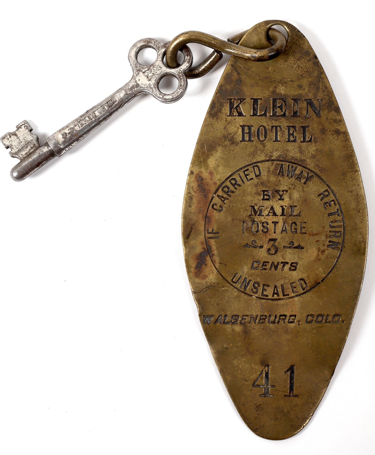 Diamond key tag from Klein Hotel, 5x2. 1/8". Brass has a few wrinkles.