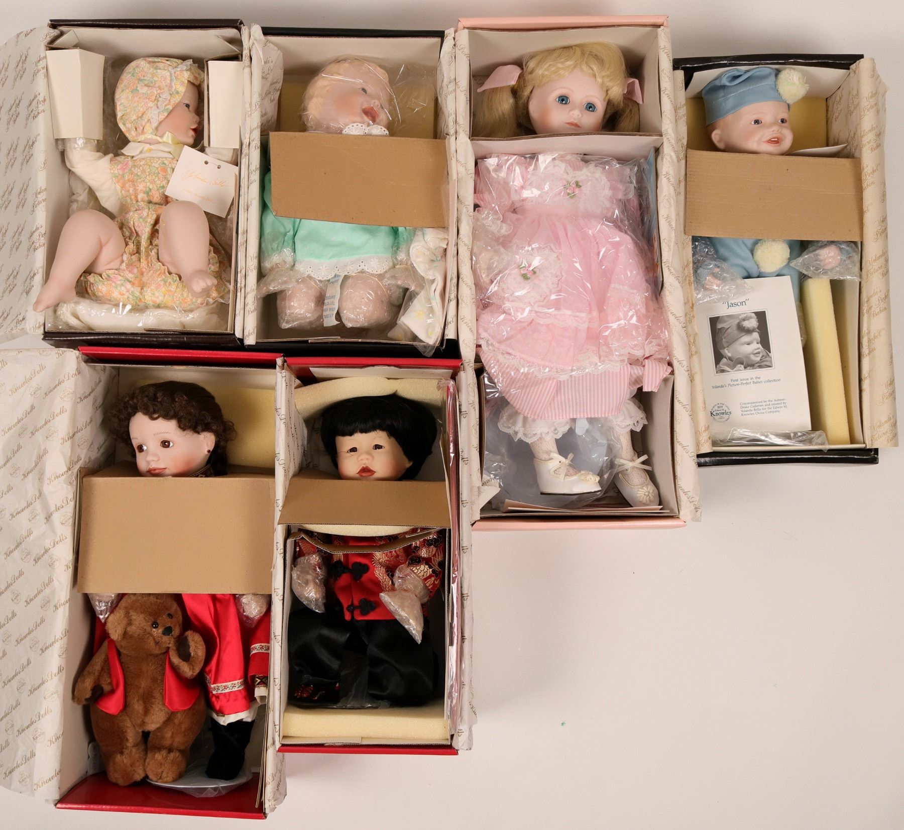 This is a collection of six dolls; three Yolanda's Picture Perfect Dolls and two International Dolls all made by Knowles. There is a Chen doll; Natasha doll; a Jessica doll; Jason doll; Lisa doll; and a Meagan doll.