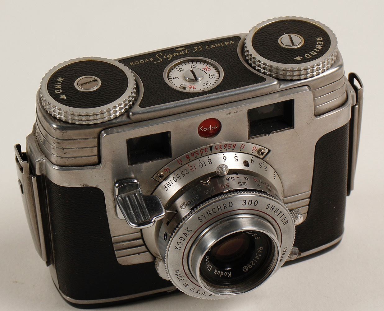 This is a 1950's vintage Kodak Signet 35 camera. No leather case available. This camera has more manual gadgetry than any camera should have. Date: Location: HWAC# 40748