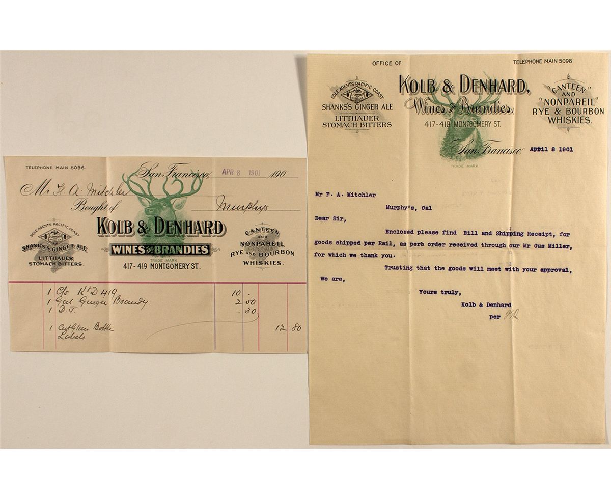 Two billheads with an elk pictorial. Both issued the same day. One is for Ginger Brandy! Located at 417 Montgomery StreetCity: San FranciscoCounty: San FranciscoState: CADate: