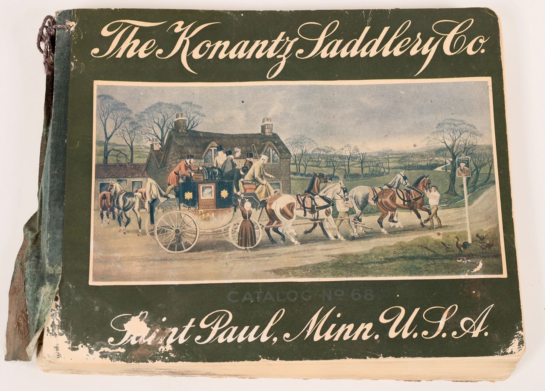 376 page illustrated catalog published by The Konantz Saddlery Co. of Saint Paul, Minnesota. Binding torn, some page damage, but entertaining for horse lovers.