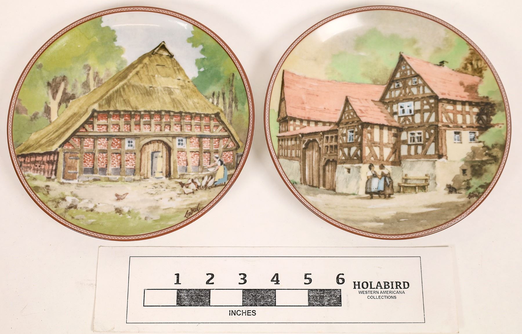 Lot ot two plates by von Karl Bedal: "Bauernhaus in Fronhausen" and "Gedruckt in Deutschland".