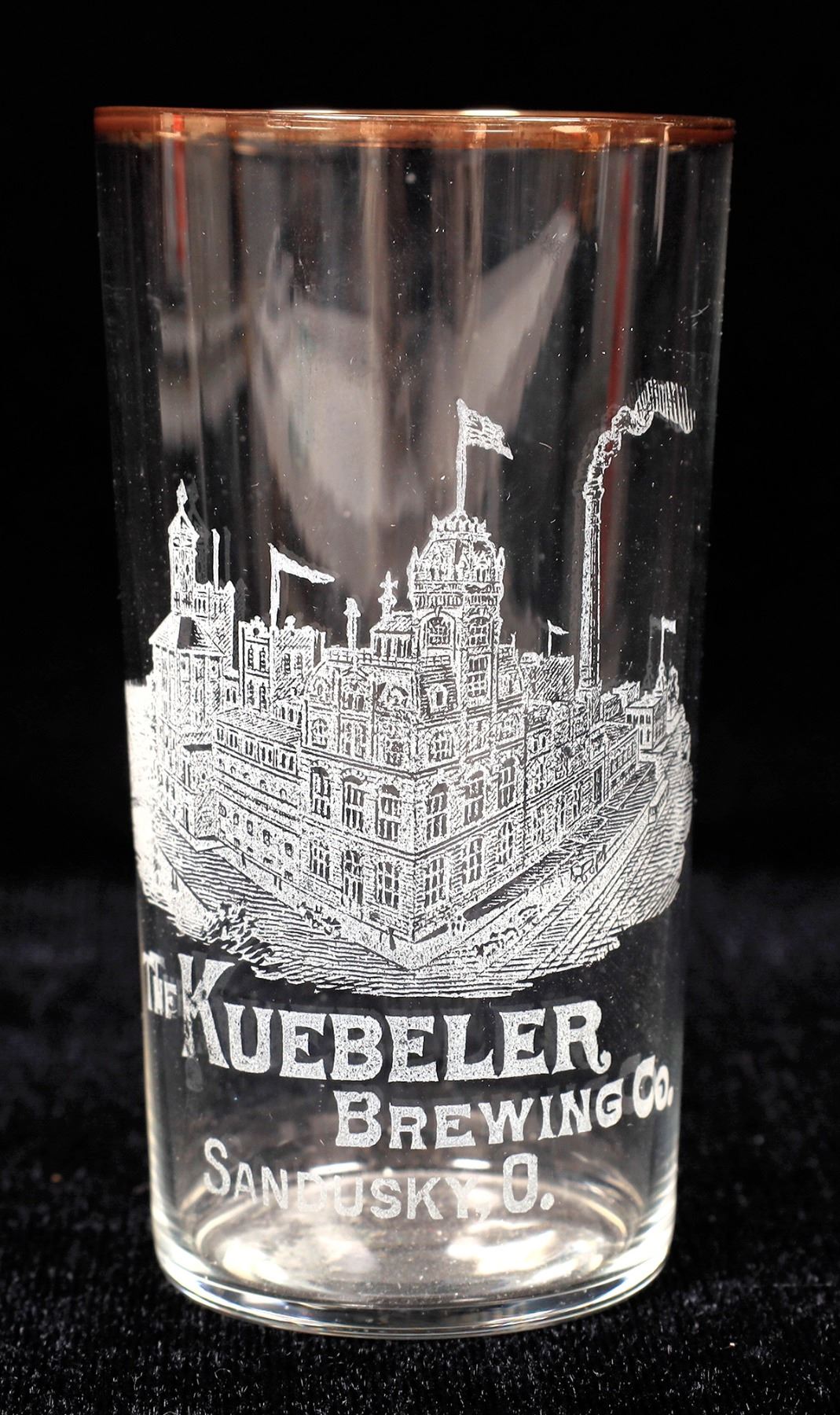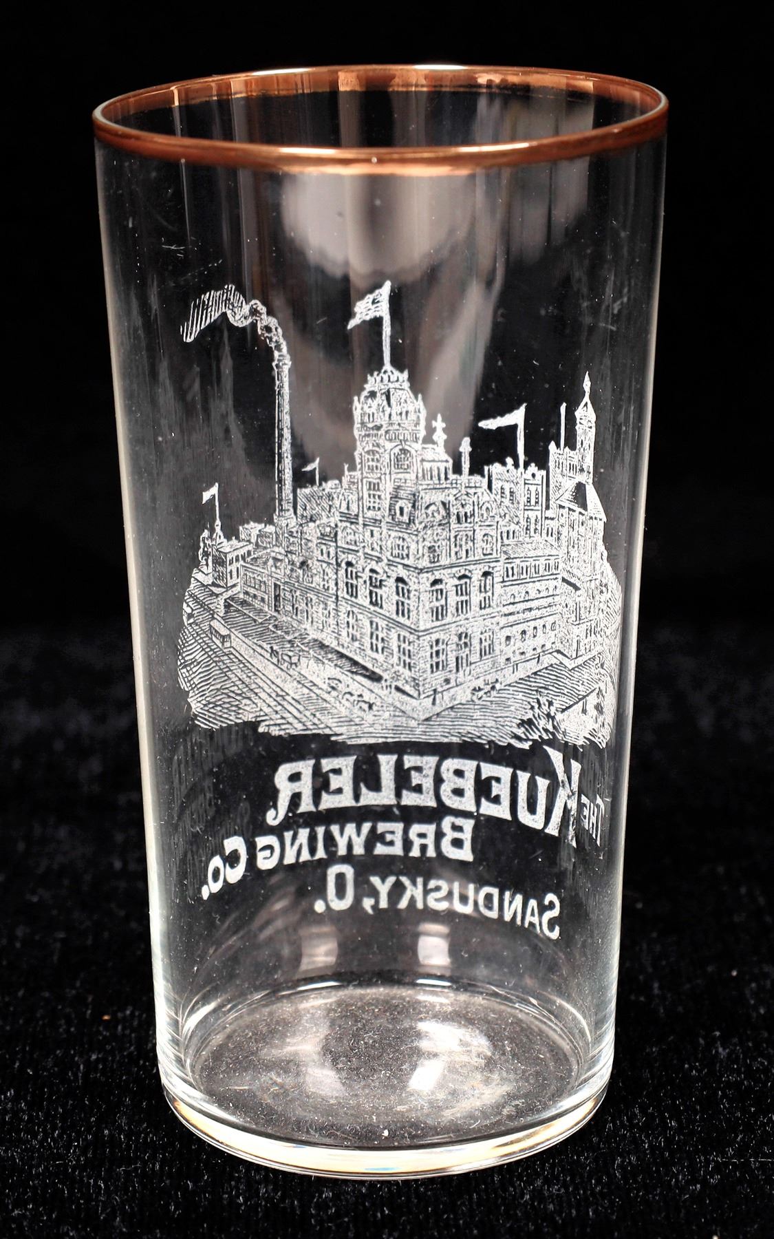 Gold leaf rim The Kuebler Brewing Co./Sandusky, O. beer glass. 4". No apparent chips or cracks. Ohio Sandusky
