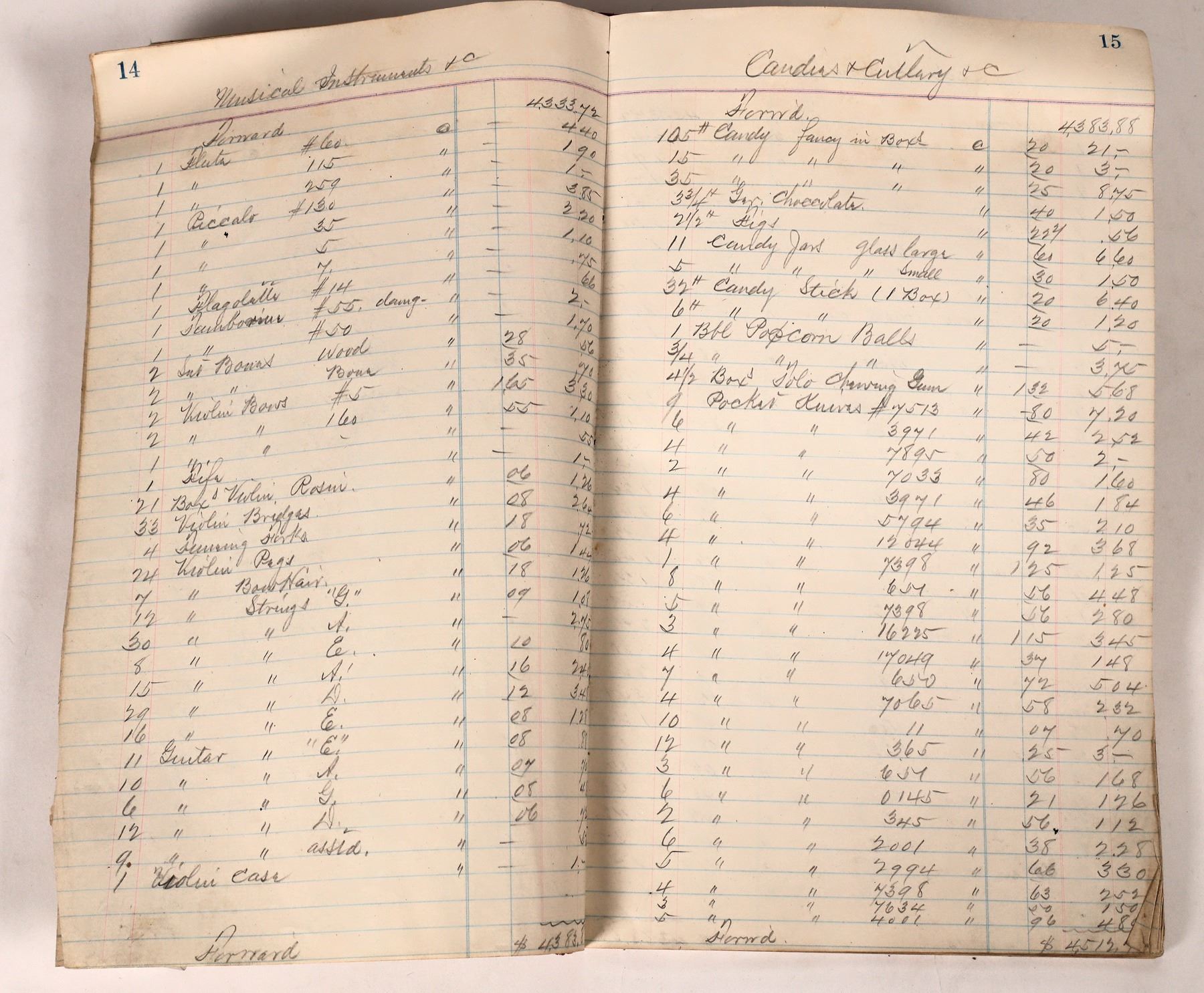1880 coverless ledger. Pencil on cover states, "Perhaps this might have to do with L Marks At Diamond City/CaB. Entries pertain to general goods, so likely a store.