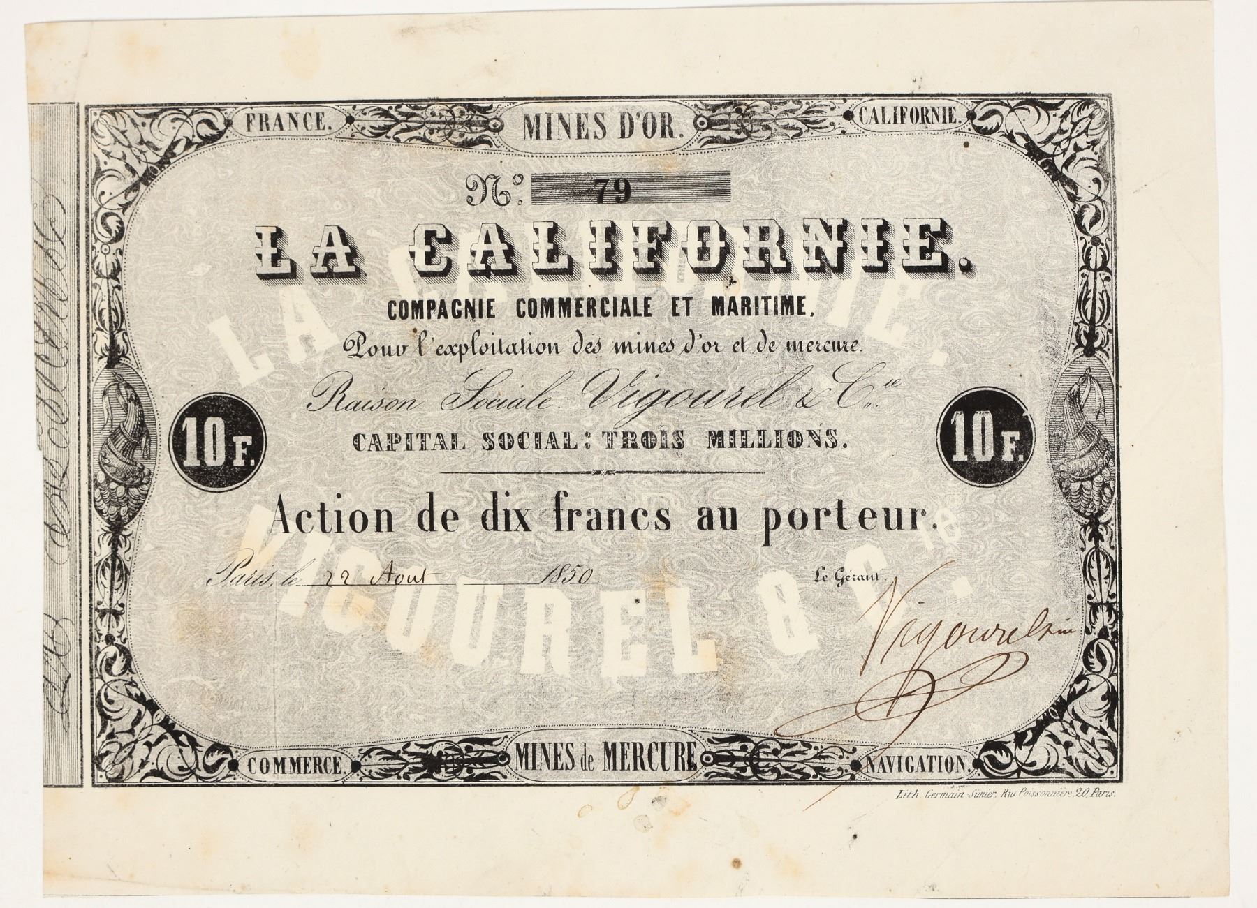 La Californie, Compagnie Commerciale et Maritime Stock, Mariposa, California, 1850 [205022]