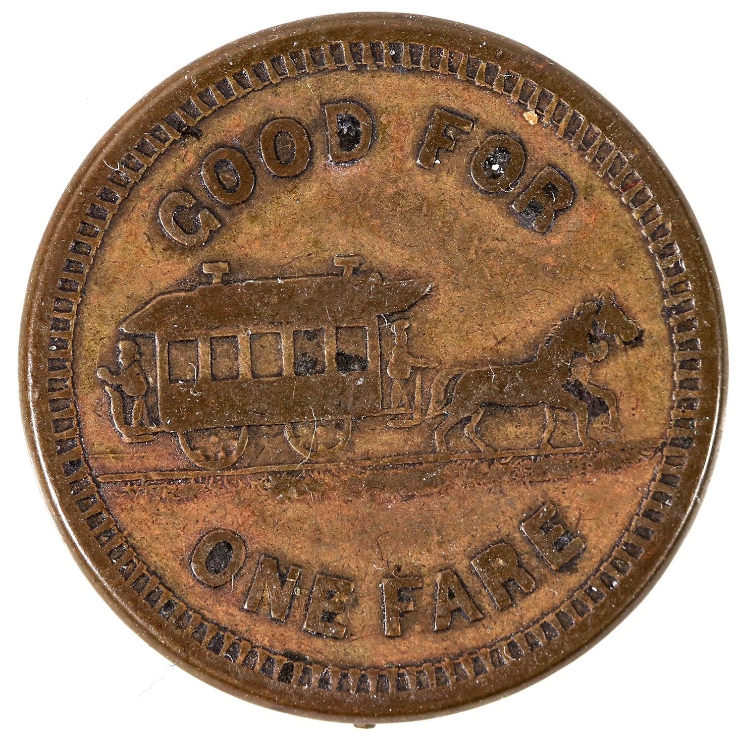 LA CROSSE CITY / RY CO / LA CROSSE, WISC. //GOOD FOR / (horsecar) / ONE FARE; Br., rd., 22 mm.