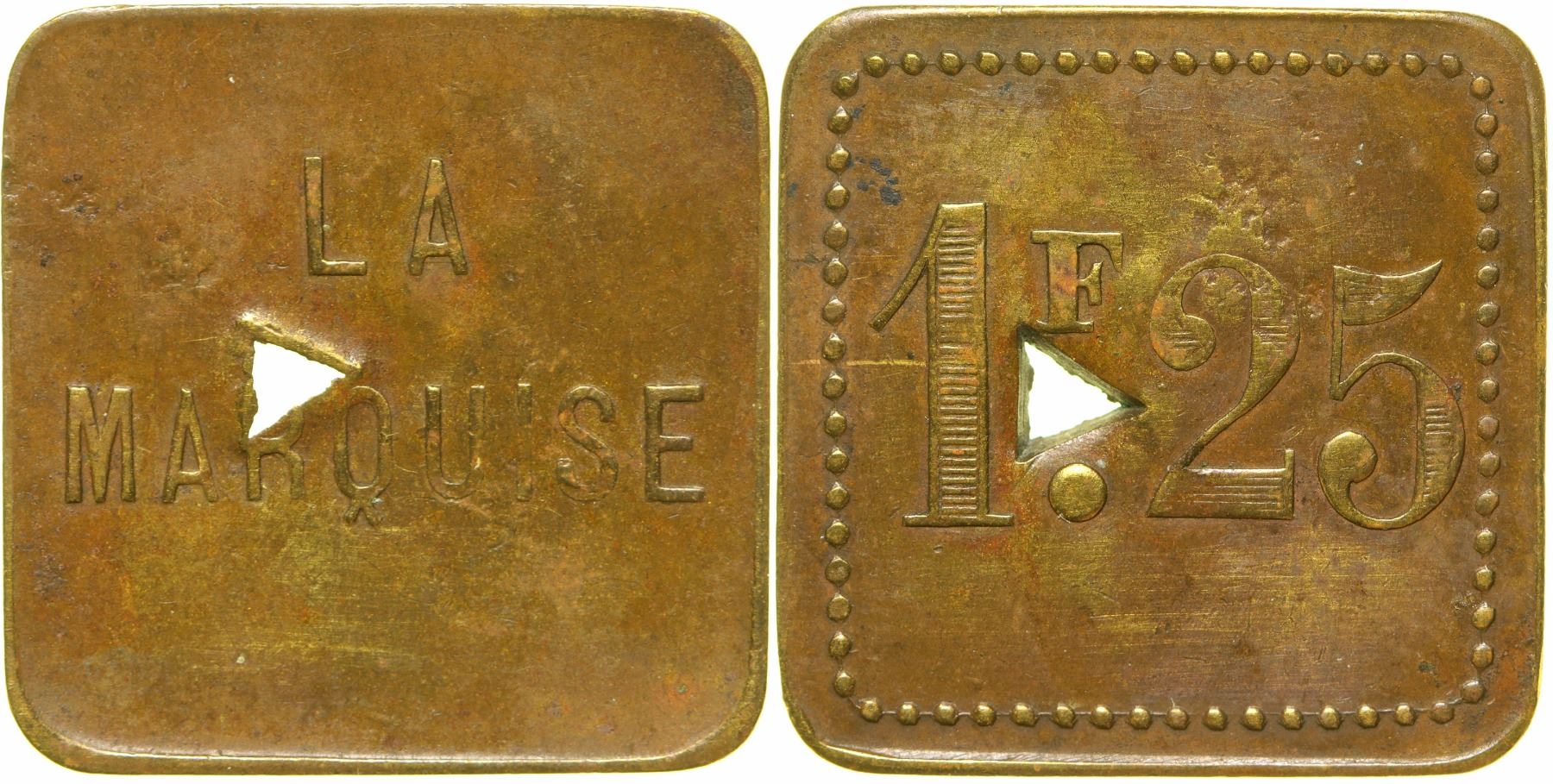 Obv.: La Marquise; Rev.: 1.25 F. Br., sq., 24 mm, triangle cut out.
