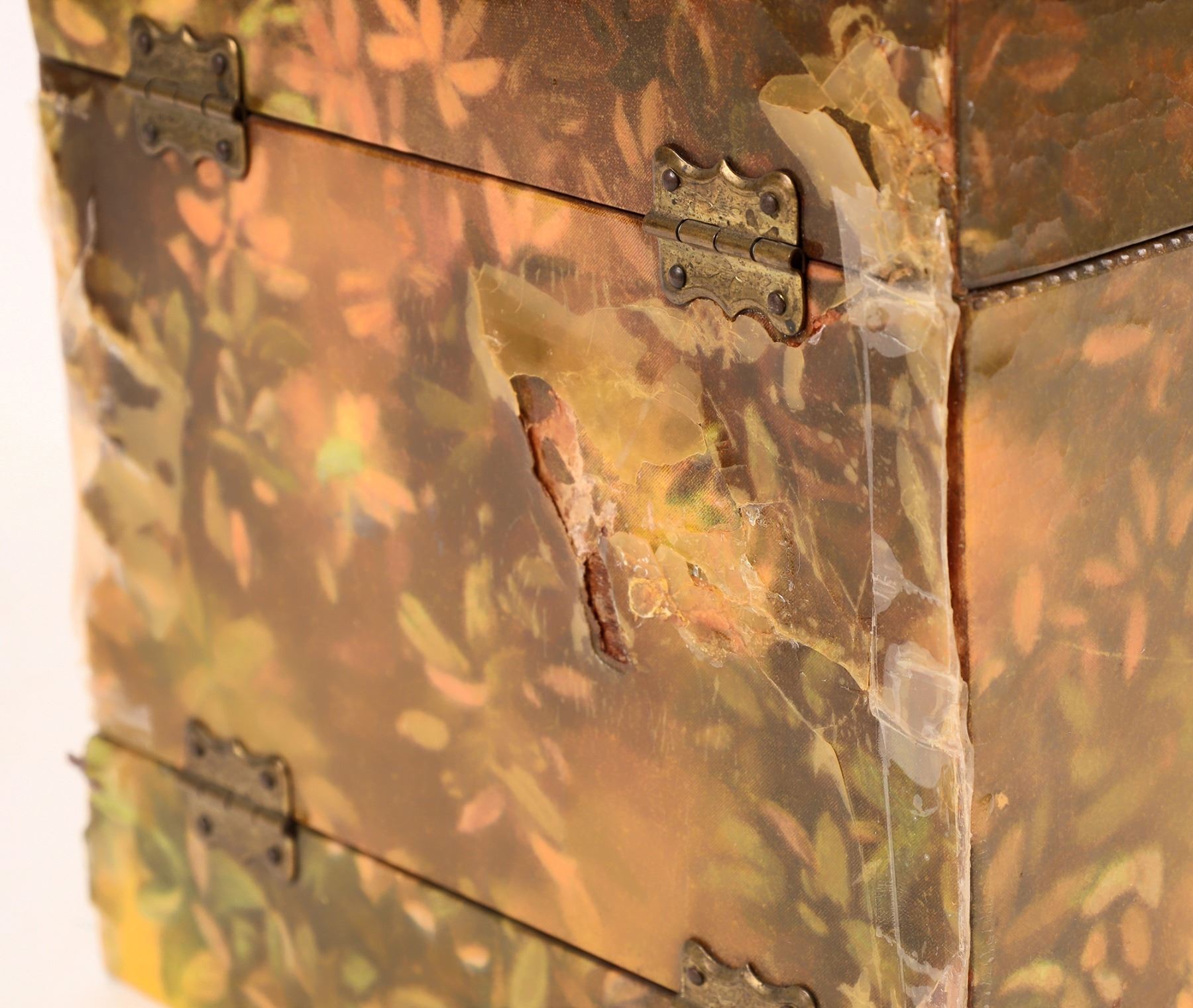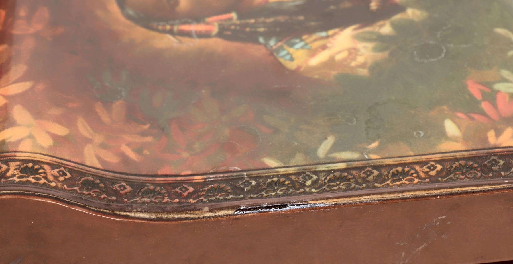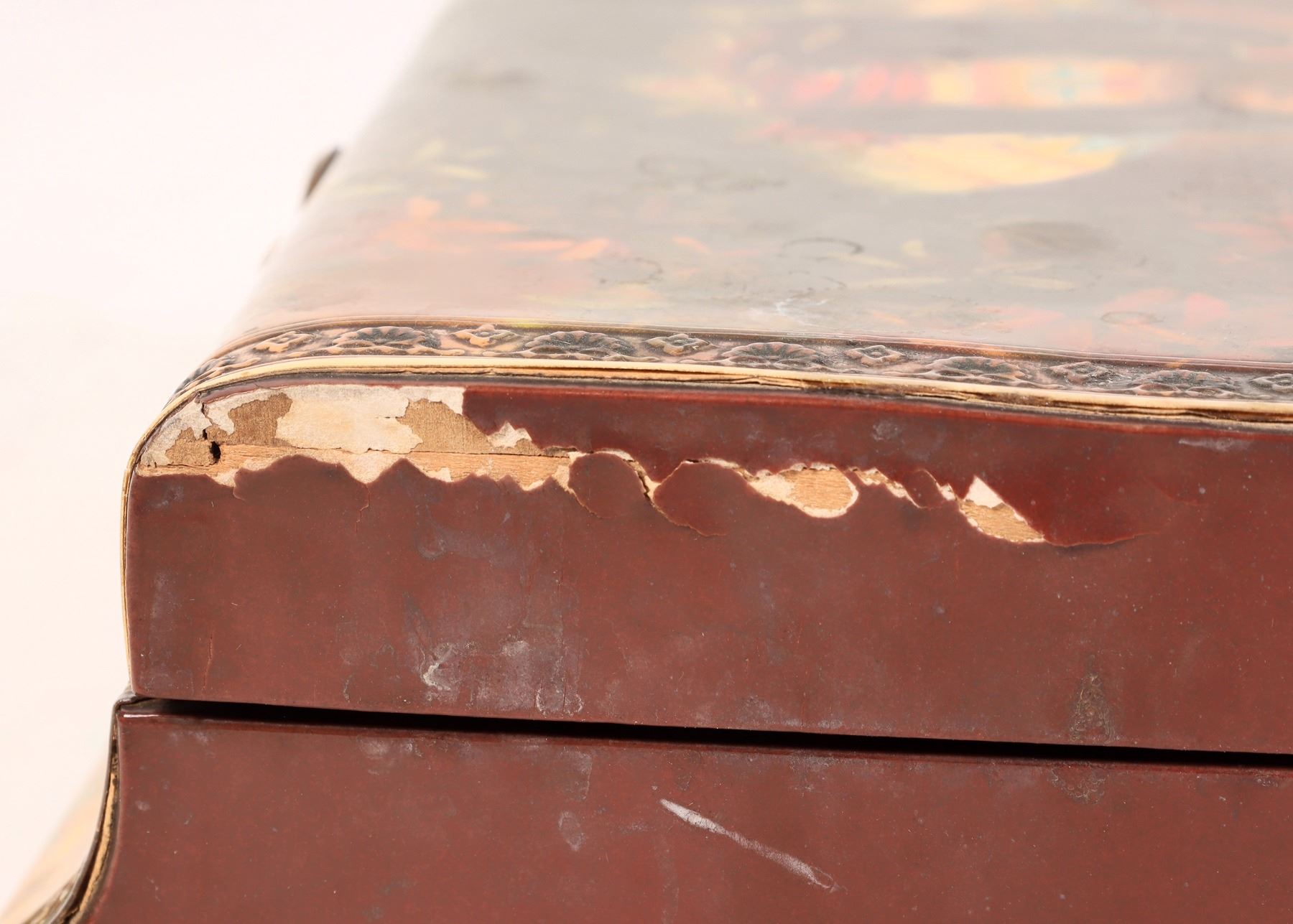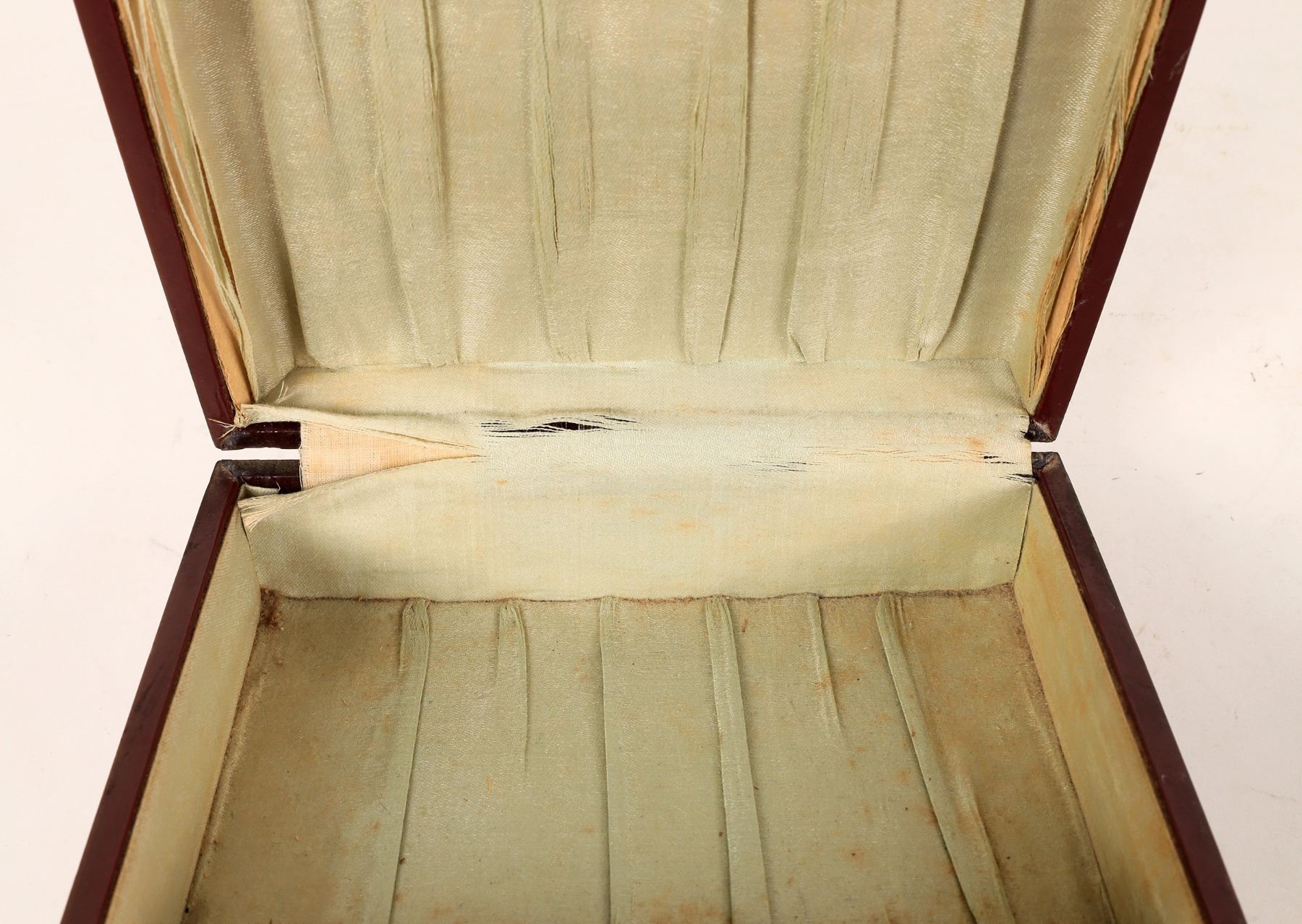 Jewelry boxes (3) with American Indian theme design. One is for men to keep their celluloid collars (included) along with cufflinks and tie pins. It is decorated in a clousinet-like style, showing an Indian Chief (Measures 6"x 6" The other two, one measuring 6"x 7" the other measuring 6"x 9". One needs replacement lining. Very nice pieces. Please see photos for more detail. 1900s