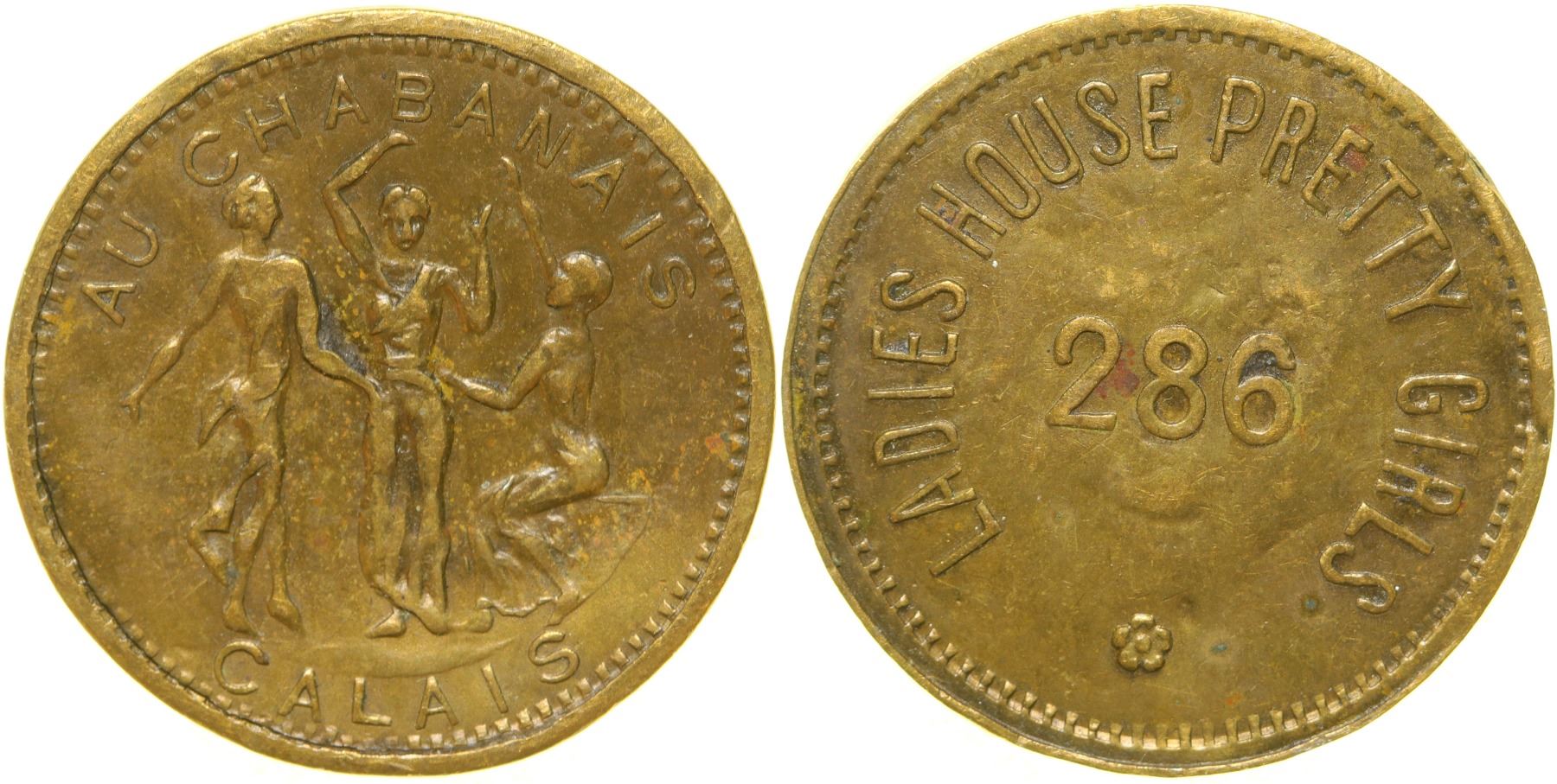 Obv.: Ladies House Pretty Girls / 286; Rev.: Au Chabanais / Calais. Br. rd., 21 mm.