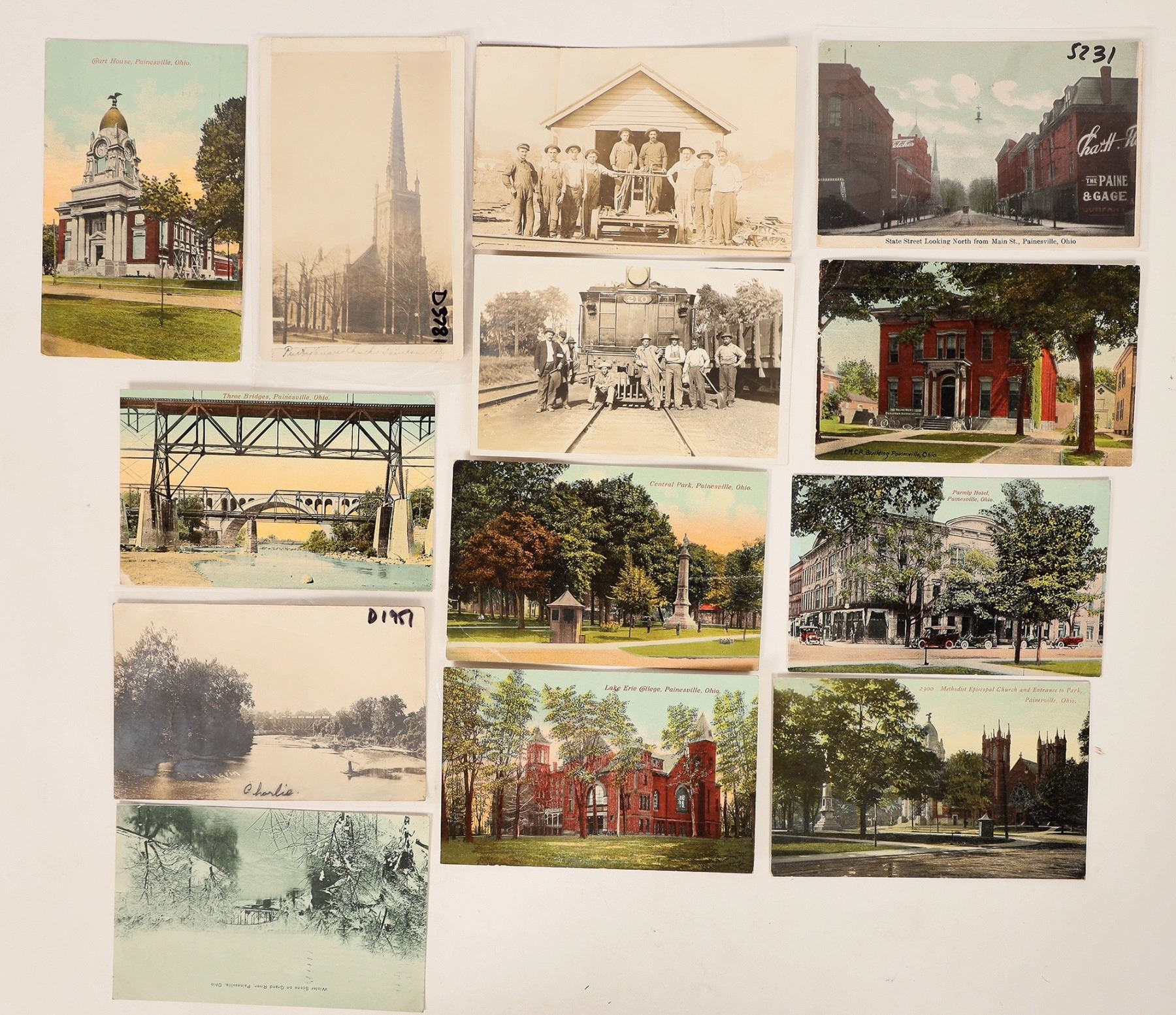 Collection of 13 postcards from Painesville, Lake County, Ohio, c1907-14. 3 RPCs. Scenery, trains, buildings, streets, etc.[ Painesville Ohio