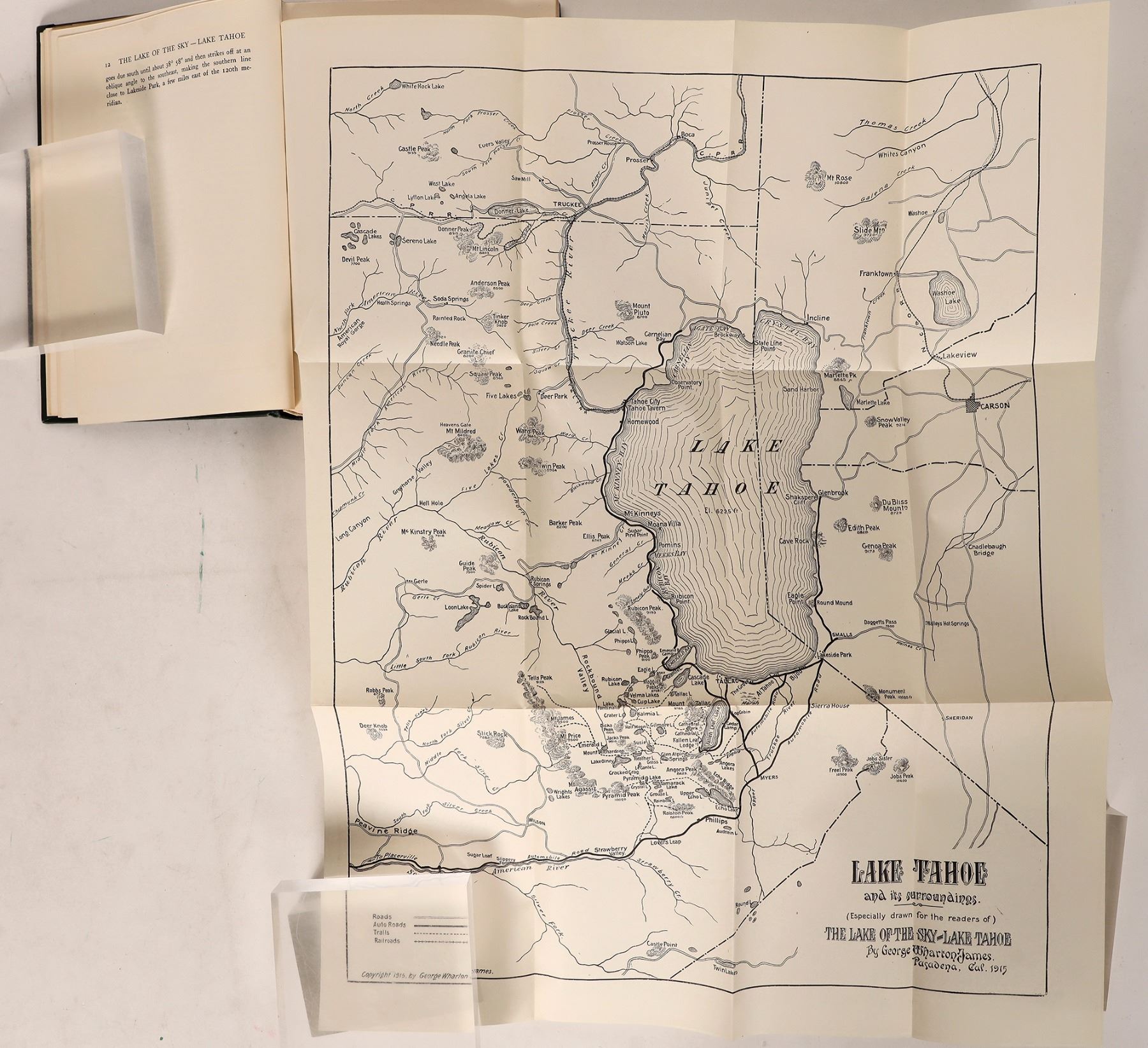 Legends of Tahoe booklet, 1905 Tales of the Sierras by J W Hayes and signed by author, 1949 first edition Sierra Nevada Lakes by Hinkle-dustjacket has chip, 1956 The Lake of the Sky by James and 1915 edition of the same with gilted binding. California