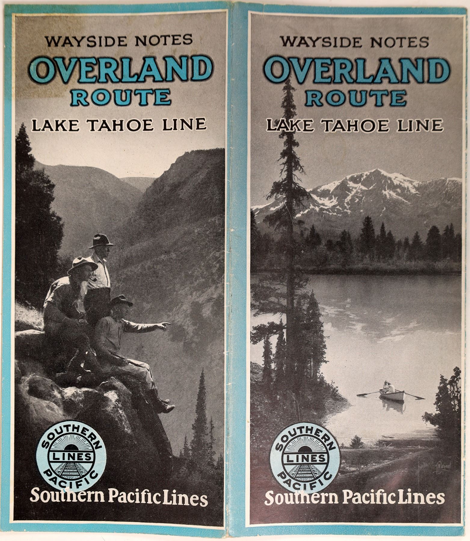 Southern Pacific Railroad. 10 pages. Each page has five photographs of stops between Salt Lake City and Oakland. All with descriptions. Tahoe and region gets a good look! (W. D. Miles Collection)