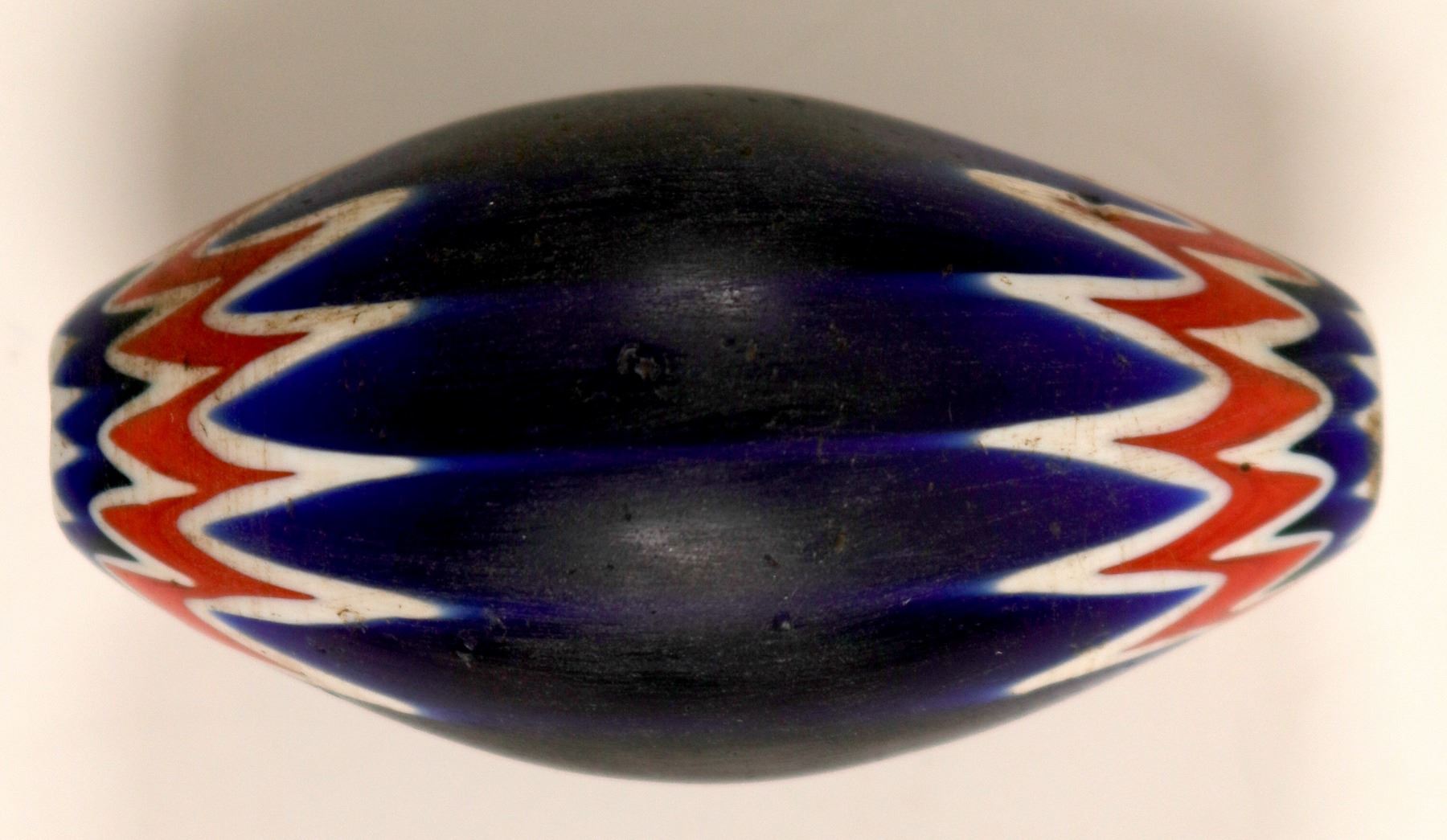 Contemporary bead approx. 2" length x 1" diam. This is marquise cut. Good condition. Moe & Mary Royels Wigwam Collection
