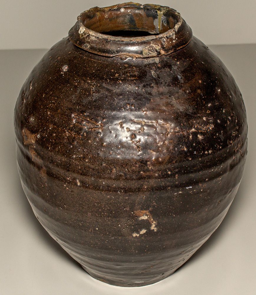 13" tall and 36 " in diameter. Ovoid form with some chips around mouth and glaze flaws to be expected with this old of a primitive piece. No cracks or hairlines in the body of this piece.City: Angel's CampCounty: CalaverasState: CADate: