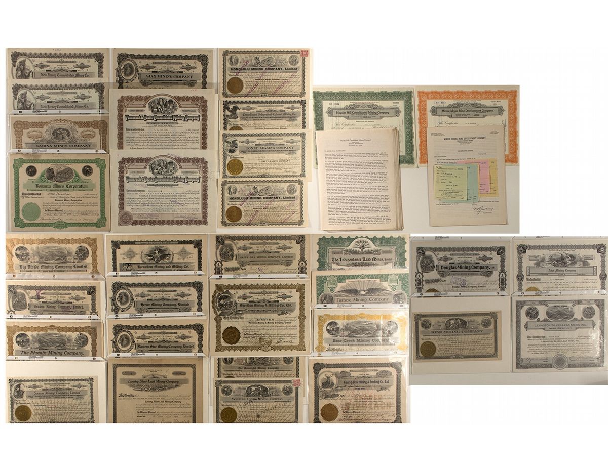 Large Collection of Mining Stock Certificates Issued at Wallace