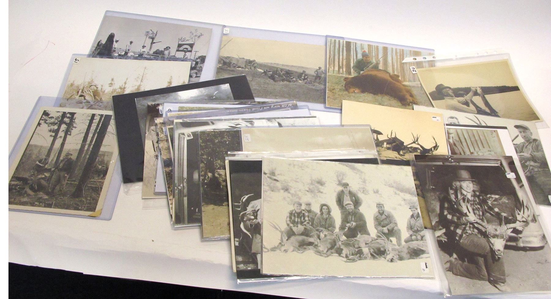 Approx 29 8" x 10" b/w photos, some reprints. Most are trophy shots highlighting the kids. Features deer, elk, moose, fox and fish. Date: c. 1920-1950 Location: HWAC# 57271