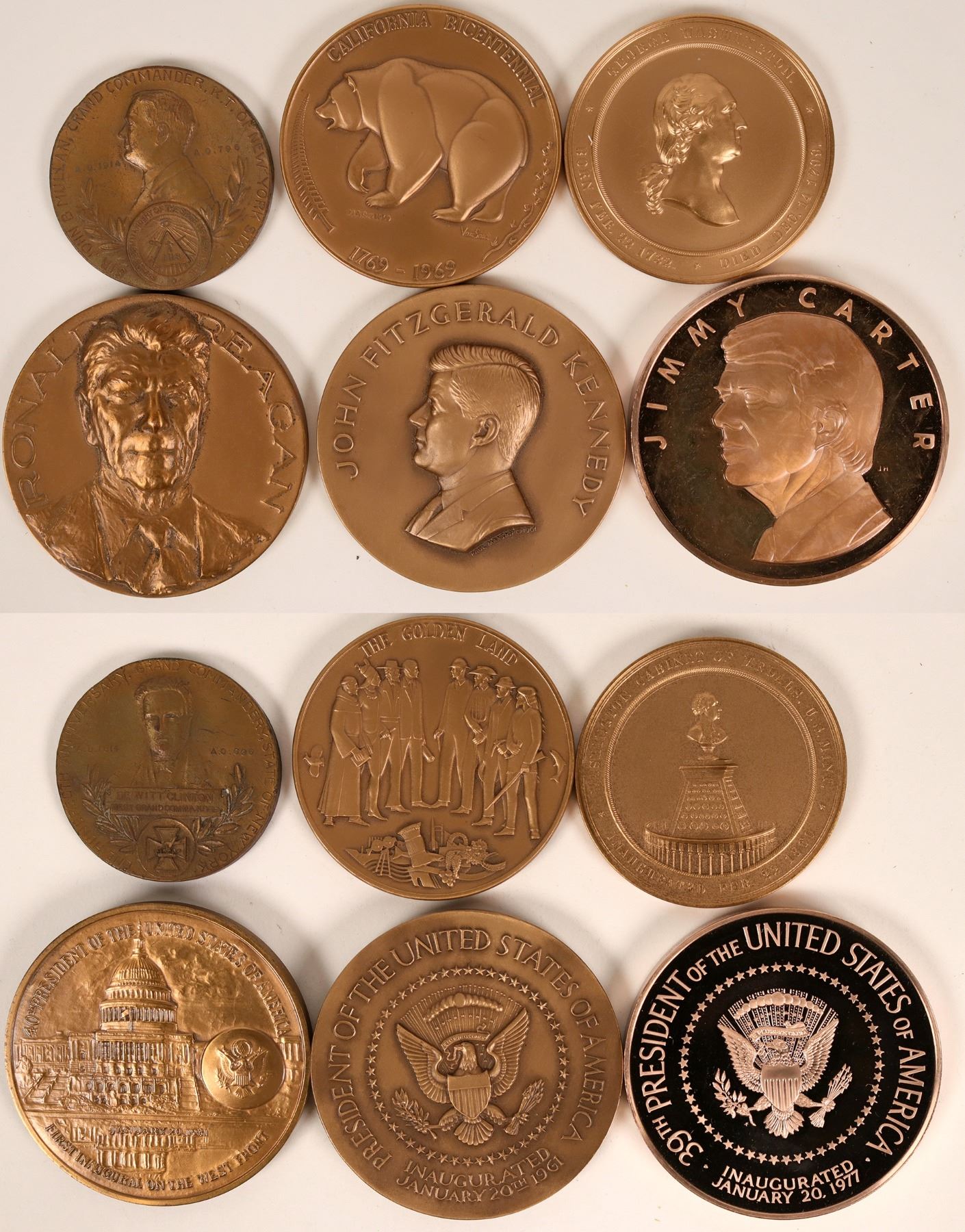 1) John Kennedy Medallic Art Co. official inaugural medal. 70mm, Bronze.