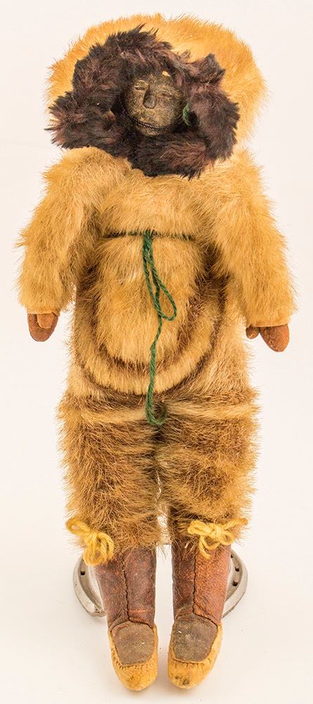 Seal skin coat and clothing. Choice early piece. Possibly pre-World War II. 14" tall and 6" across. A choice Eskimo collectable! Date: Location: Alaska HWAC # 55809