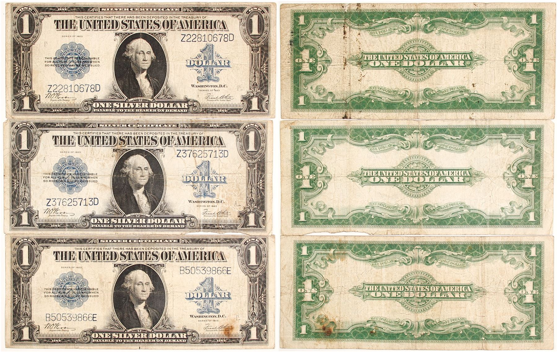 Lot of three large sized $1 bills Series of 1923, Fr. 238. All silver certificates in good-very good condition. HWAC# 61928 Date: 1923 Location: