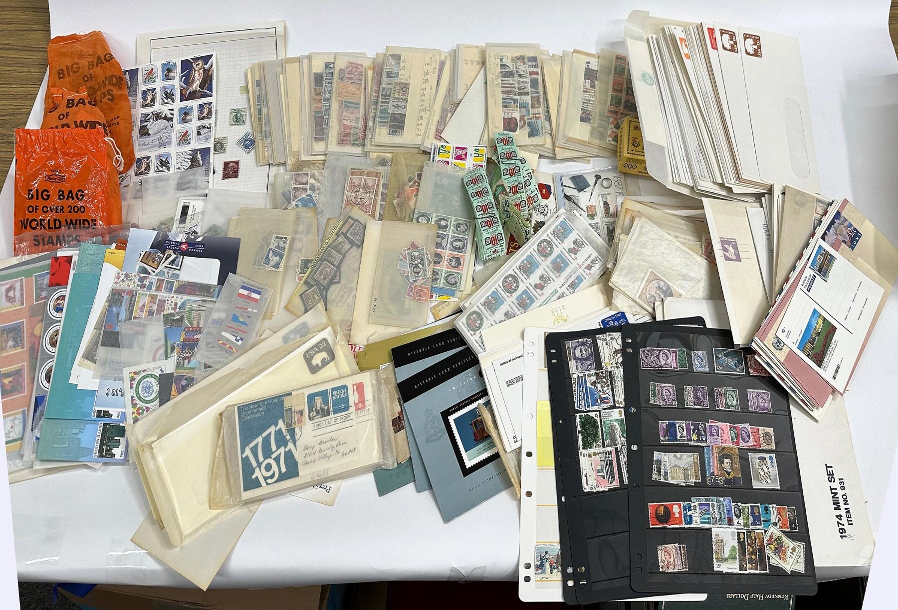 Lot contains to large boxes and for bags of stamps. Sampling: From Spain, Argentina, some US President (Taft, Monroe), wild life, unused US postage envelopes, France, Canada, easter seals. There are even S&H green stamps. Very diversified collection, might be worth the search to see what's in it.