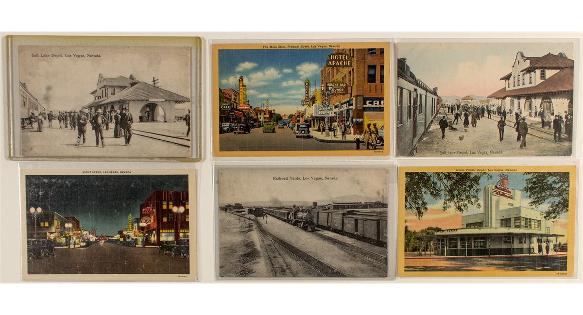 Two colorized & two B&W photo cards of railroad yards and depots around "Los Vegas," as the cards read. There is the Salt Lake Depot, and the Union Pacific Depot also. In very good to excellent condition.City: Las VegasCounty: ClarkState: NVDate: c1908-1920