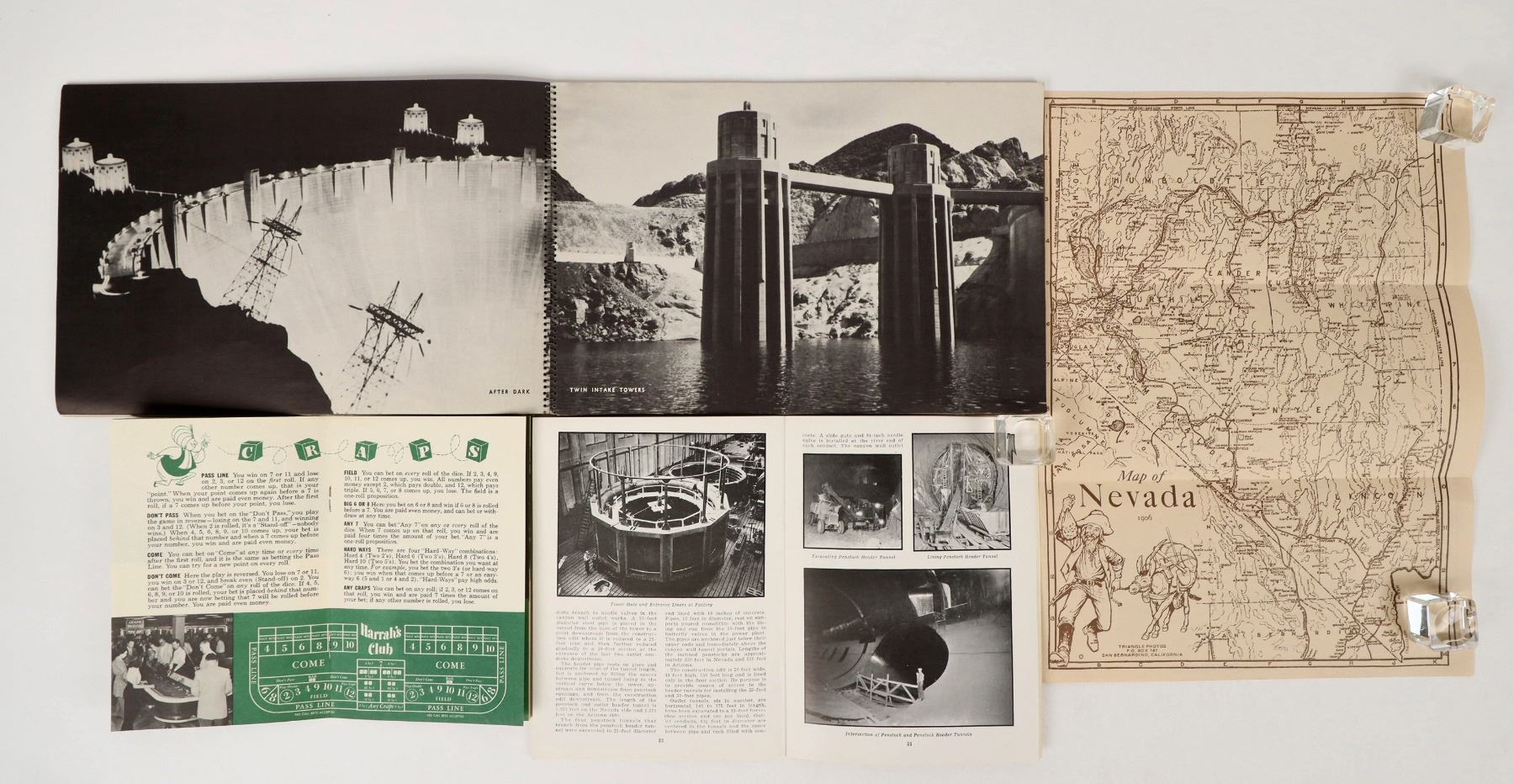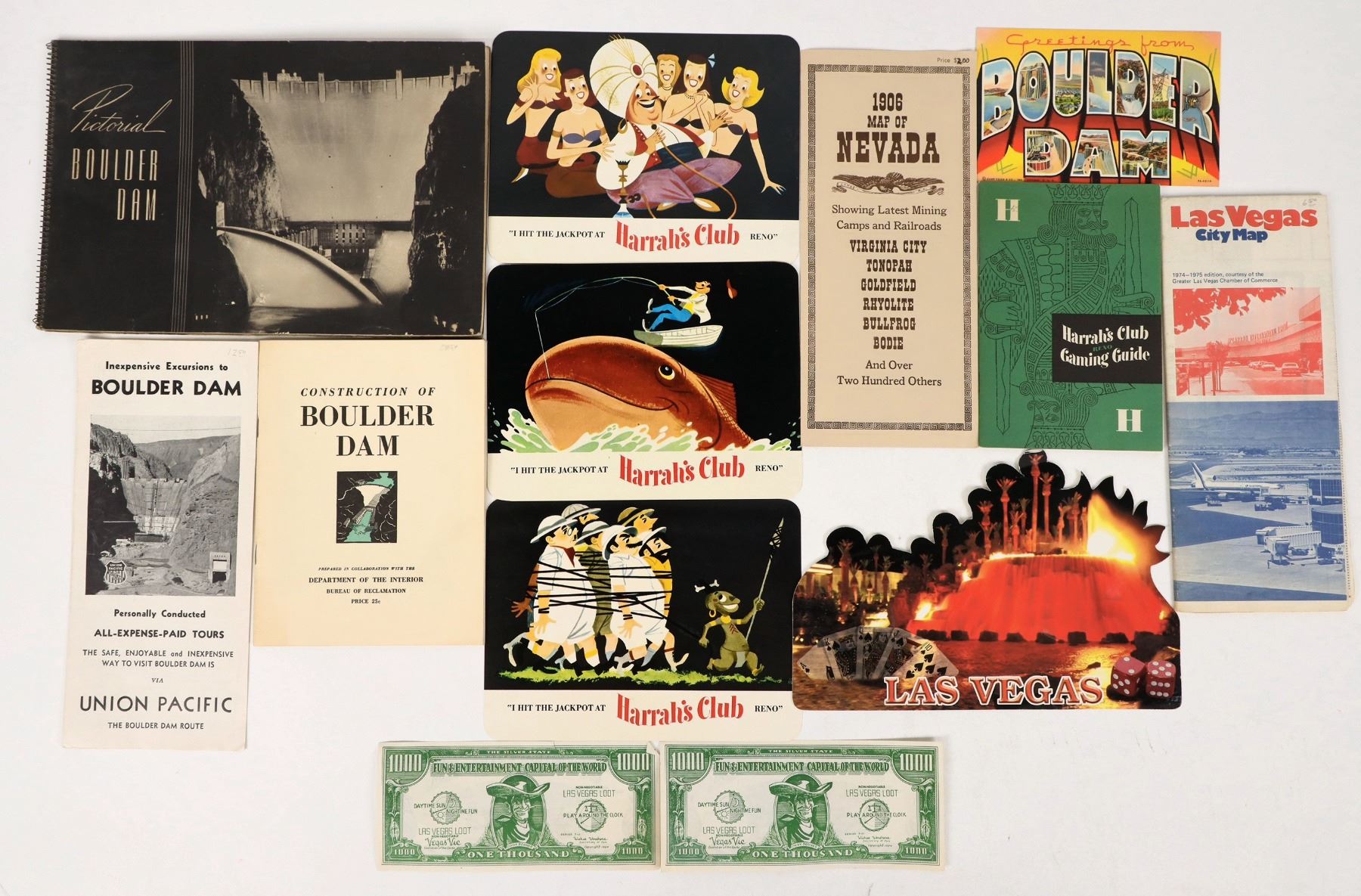 Las Vegas Souvenir Group. Las Vegas City Map, Boulder Dam Pictorial Booklet, Harrah's Club postcards, Boulder Dam Promo, Las Vegas Loot and more.
