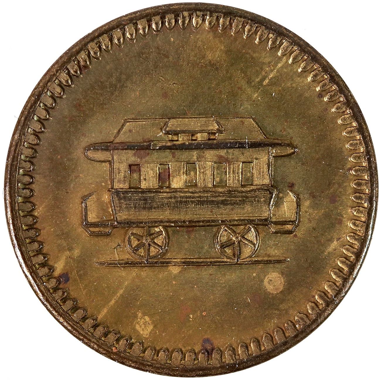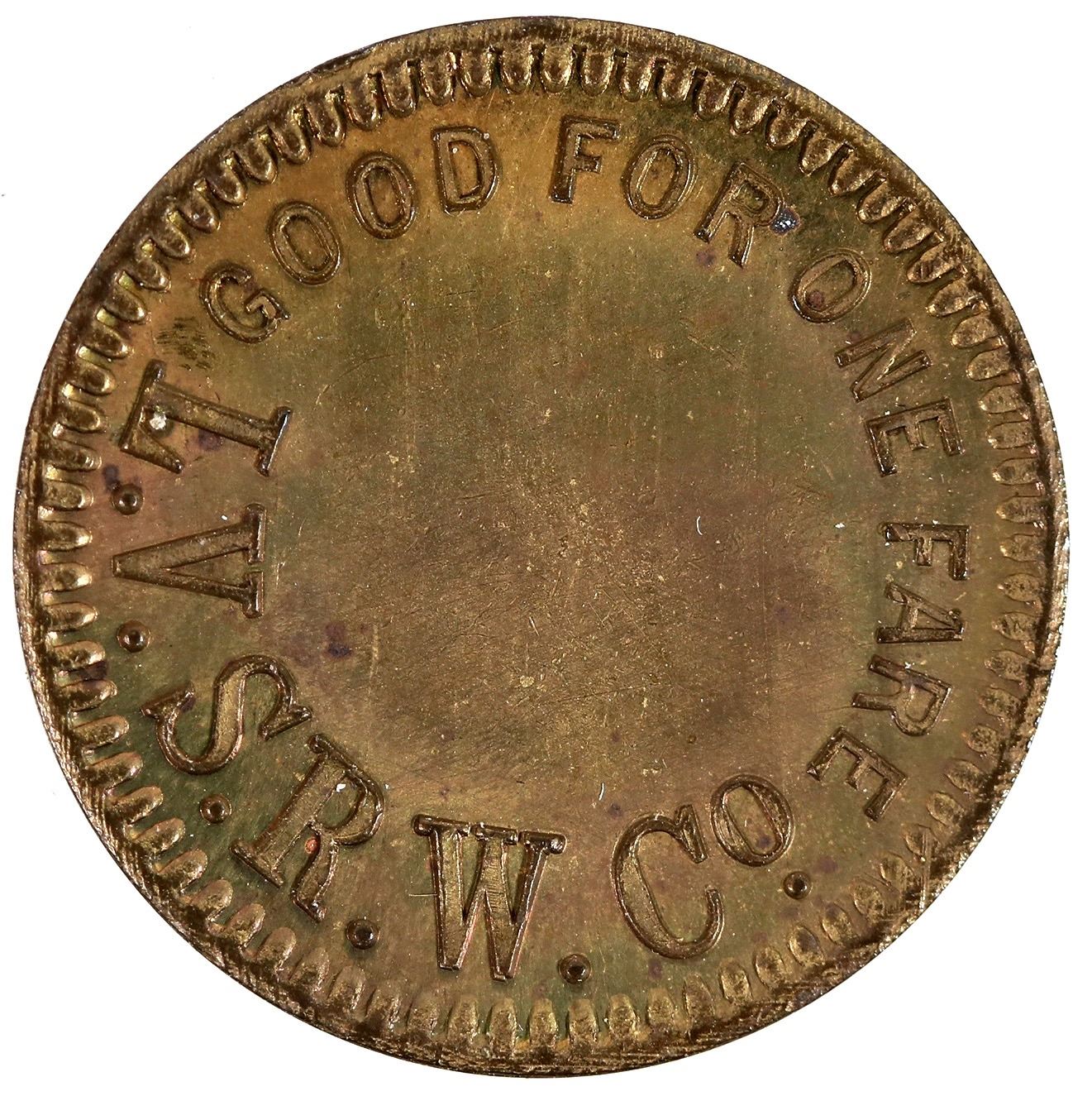 Las Vegas Street Railway token: GOOD FOR ONE FARE / L.V.S.R.W. CO. // (Streetcar); Br., rd., 21 mm. AU-BU condition.