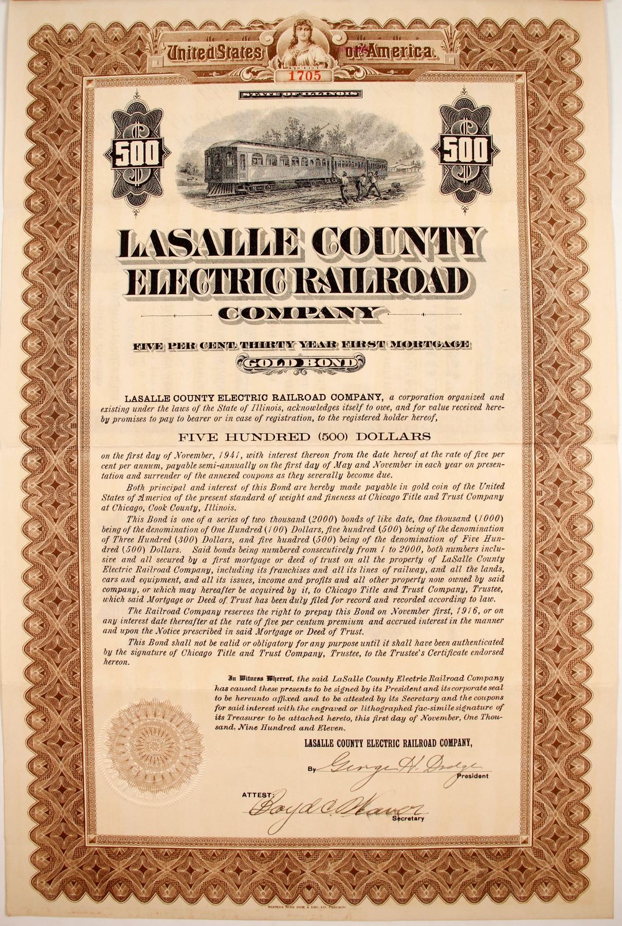 #1705 $500 5% 30 year bond. Signed by President Dredge. Prag Collection. State: City: Date: 1911 HWAC# 84974
