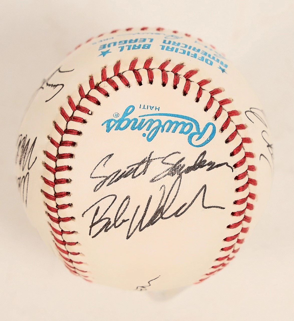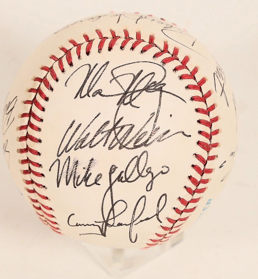 Late 1980's-early 1990's Oakland A's signed baseball. There are Hall of Famers Dennis Eckersley, Rickey Henderson, as a well as Jose Conseco, Dave Stewart, Mike Gallego and more. It is stamped Bobby Brown as American League President. Unused and in nice condition. Please see photos for more details.