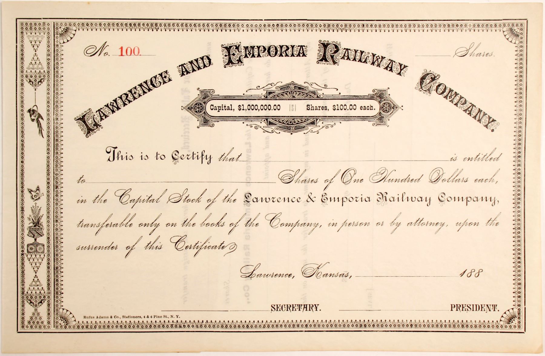 Unissued #100. Prag Collection State: City: Date: c1880's HWAC# 85108