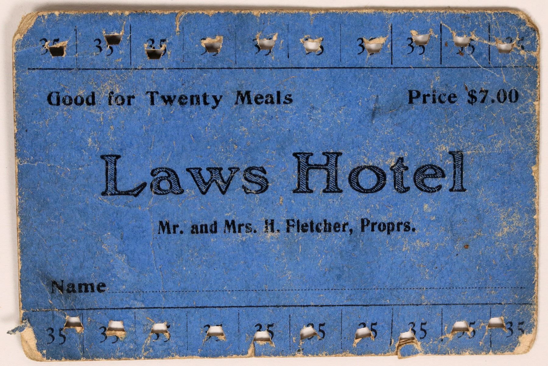 Rare cardboard punch card: "Good For Twenty Meals / Price $7.00 // Mr. and Mrs. H. Fletcher, Proprs," All twenty meals were punched. 3 x 2 inches.