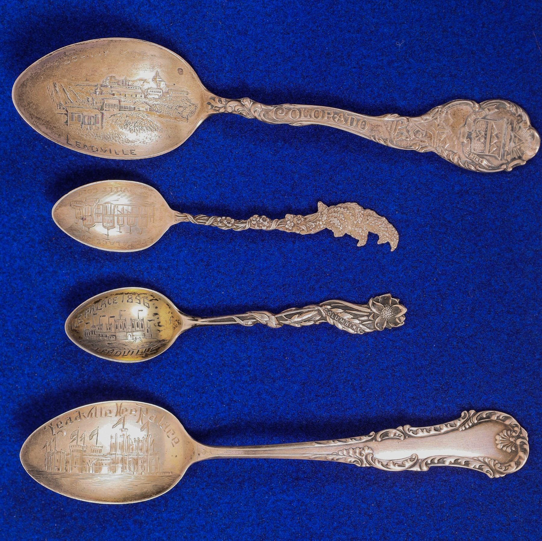 4 Leadville, CO spoons. Ice Palace, Johnny Mine, Ice Palace 1896, Ice Palace '96.