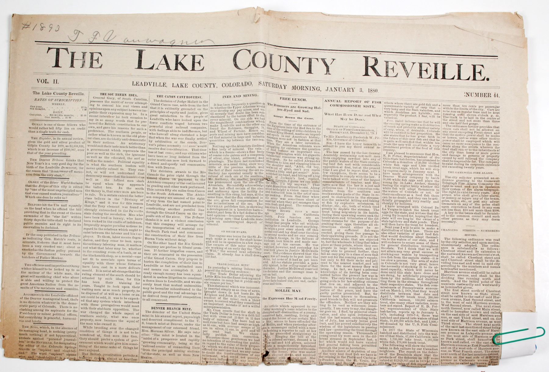 Lake County Reveille, Jan 3, 1880 where miner John Marshall commits suicide after suffering severe bout of rheumatism in his cabin. Much detail. generally poor condition, but article fine. State: Colorado City: Leadville Date:
