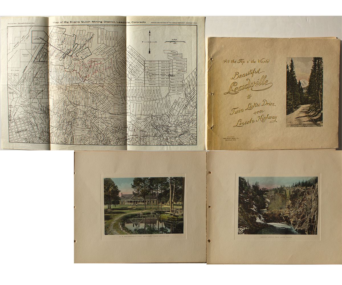 2) " Beautiful Leadville to Twin Lakes Drive over Lincoln Highway" 12' x 10". 6 nice pictures on heavy paper. Pictures are loose with pictures and cover punched with three holes on left edge.