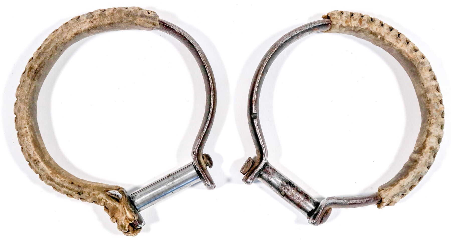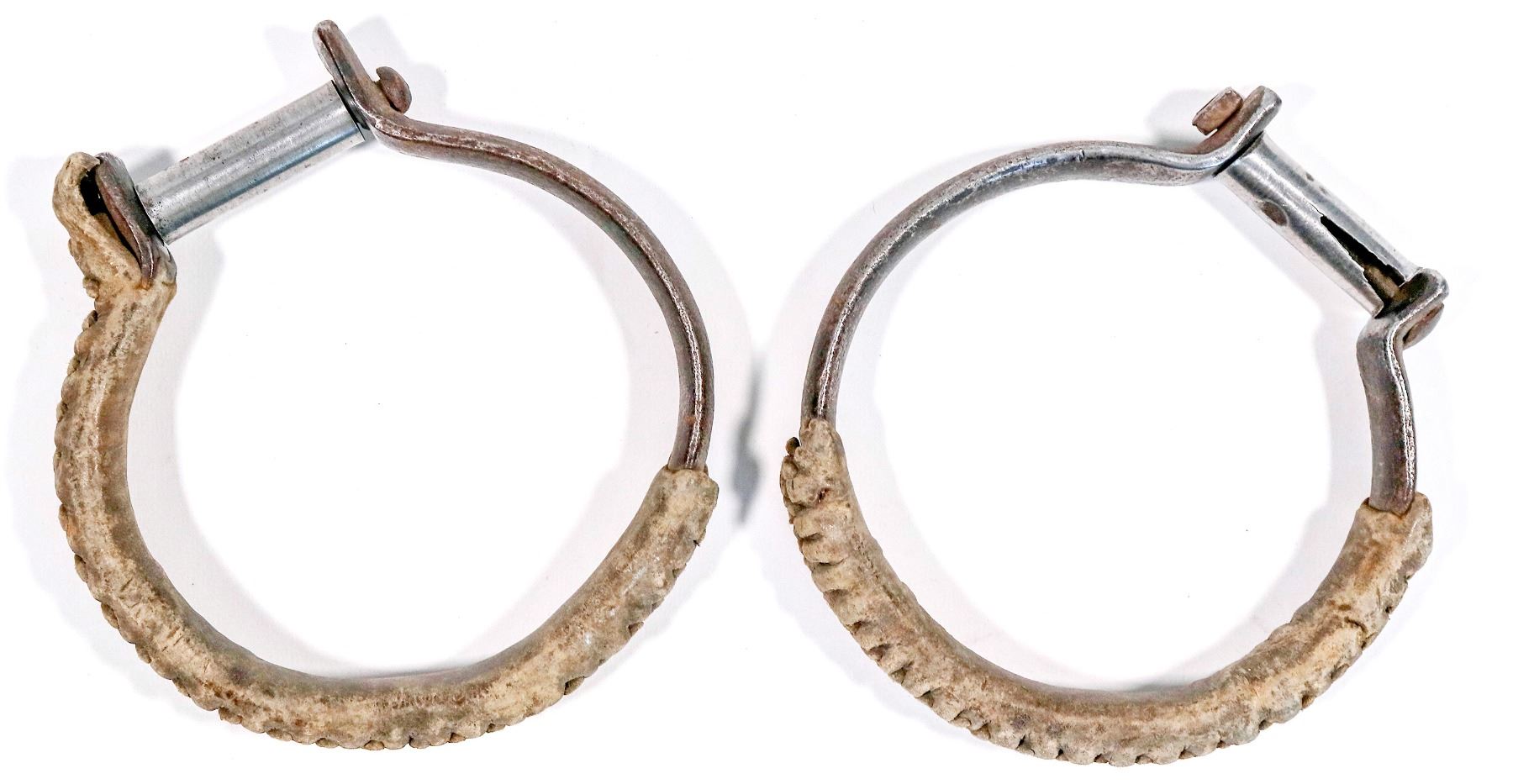 Pair of leather wrapped stirups. 5.75" across.