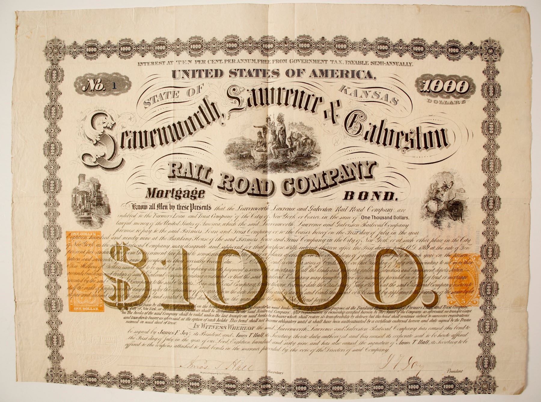 Important $1000 Bond No. 1 signed by JF Joy as president and Amos HAll as secretary. Three RNs, RN W2 at left, RN P5 at right and and RM P5 on back State: City: Date: HWAC# 85766