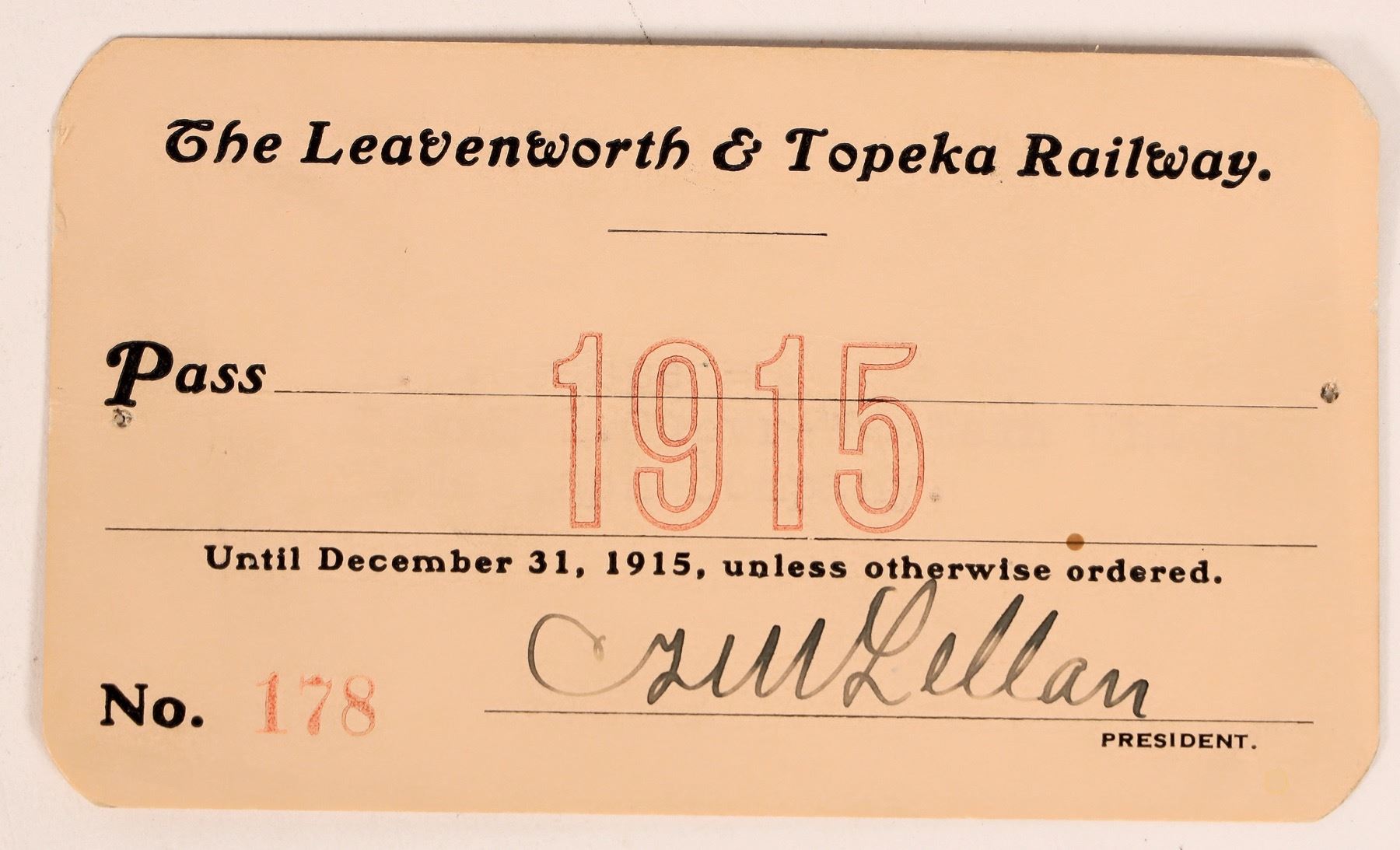 1915 Leavenworth & Topeka Railway pass. Kansas