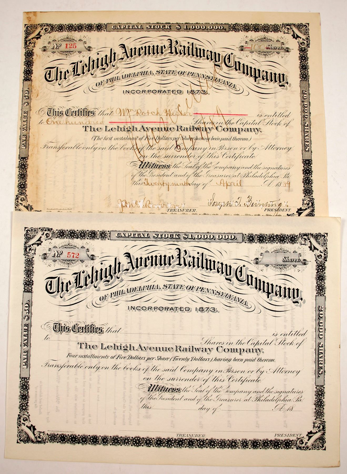 I/C #125 Wm Wisher 100 shares 1889 signed by President illegible. #572 unissued. Ken Prag Collection