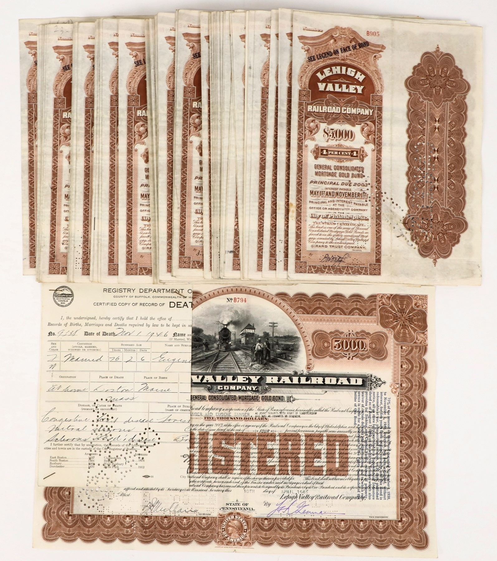 Lehigh Valley Railroad Company Bonds c.1940s About 60. Original signatures, some coupons. $5,000 bonds.