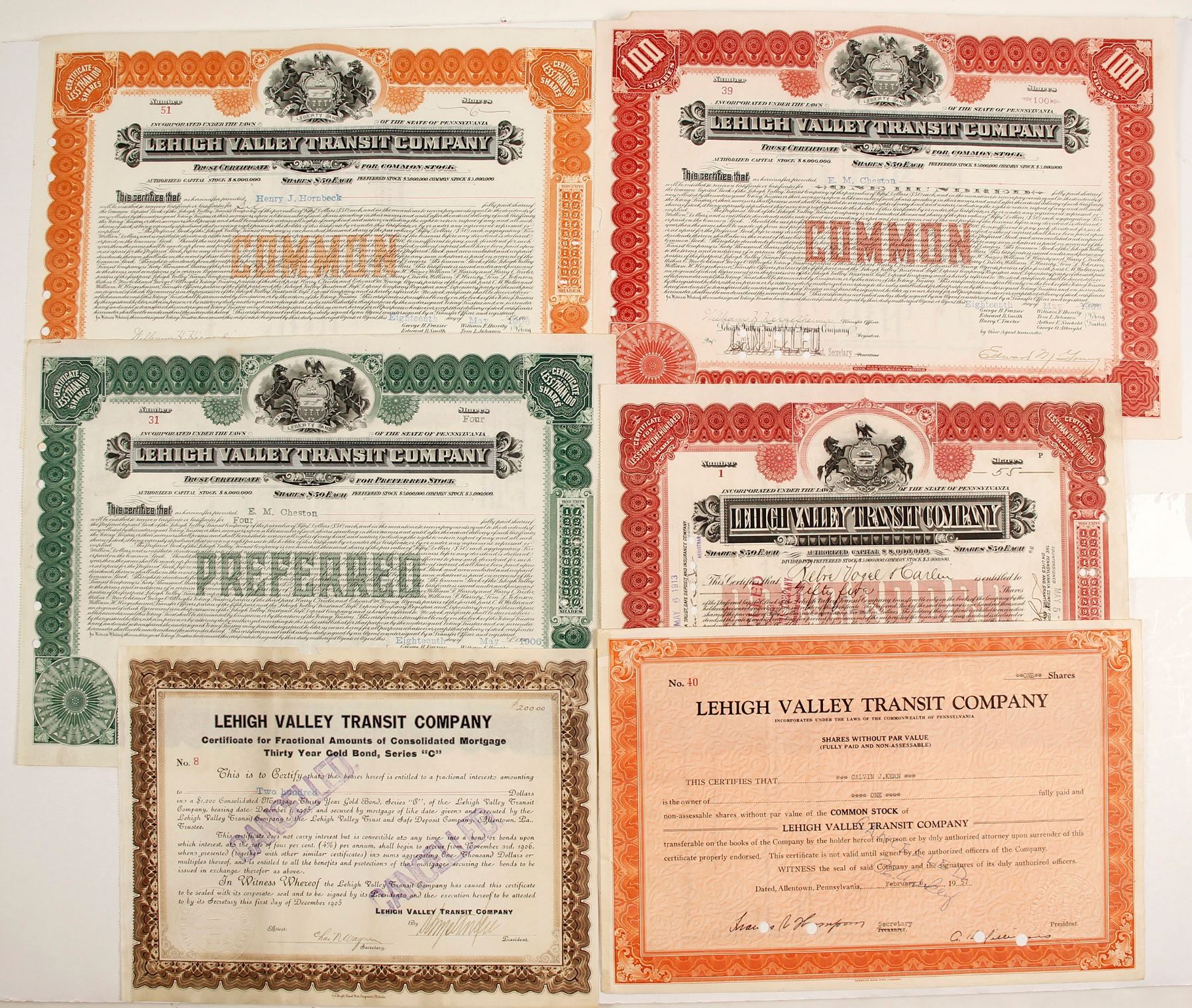 6 different. #8 30 year gold bond. Stocks-#40 1957, 331 1906, #51 1906, #39 1906-2 chips, #1 1913. Ken Prag Collection
