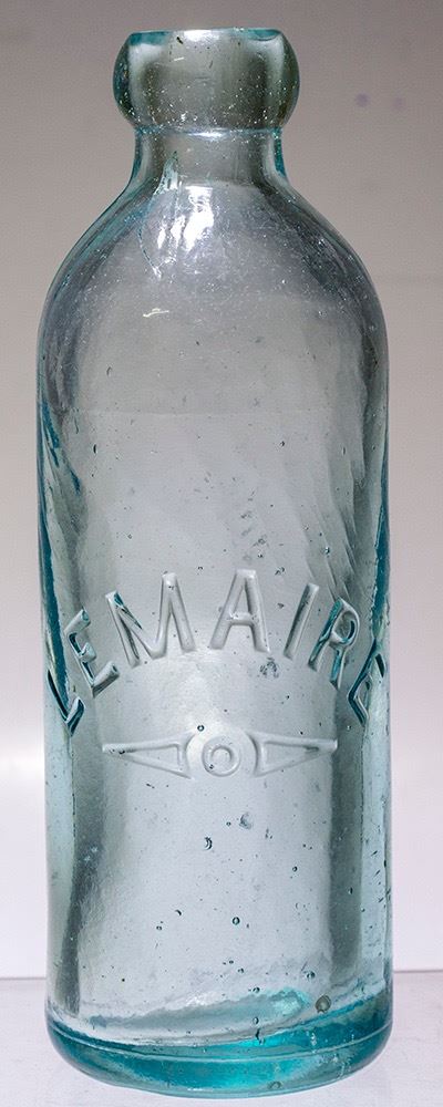 Extra rare Battle Mountain soda bottle with chip. Aqua, tooled to Hutchinson style soda. See Nevada Bottle Book Volume I p87-90 for complete history on this fantastic bottle, same example shown in book. Date: c1890-1892 Location: Battle Mountain, Nevada HWAC# 571636