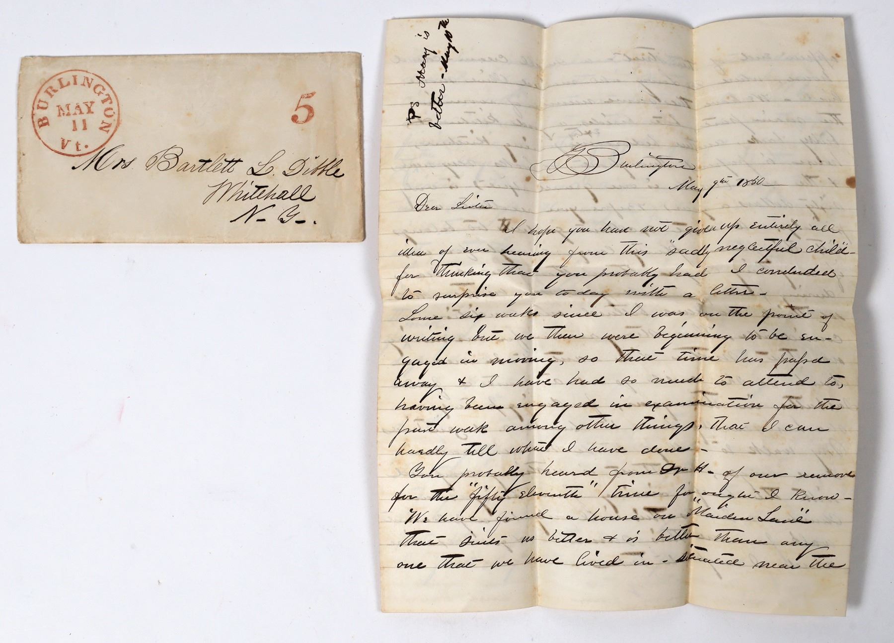 1850 letter discussing friends getting smallpox and the author having been vaccinated.