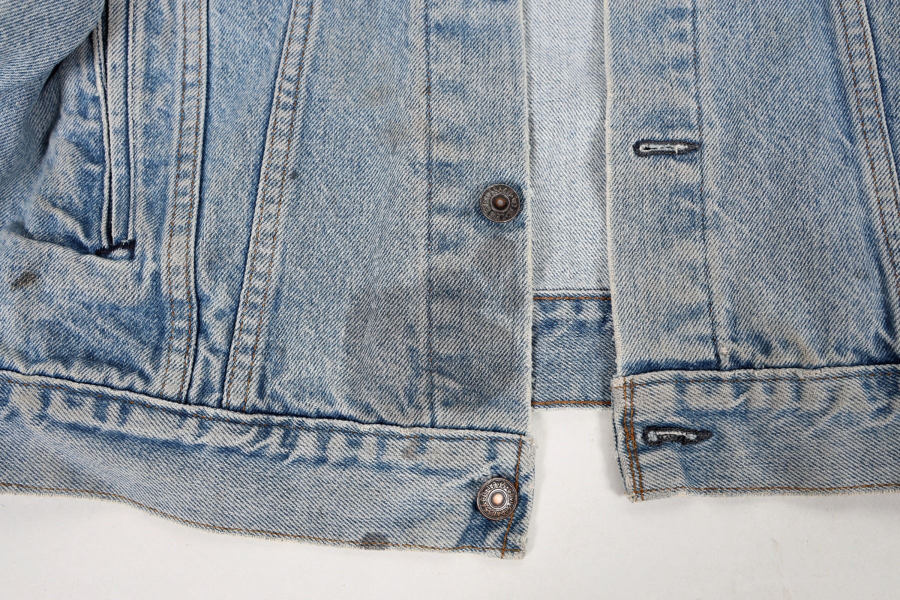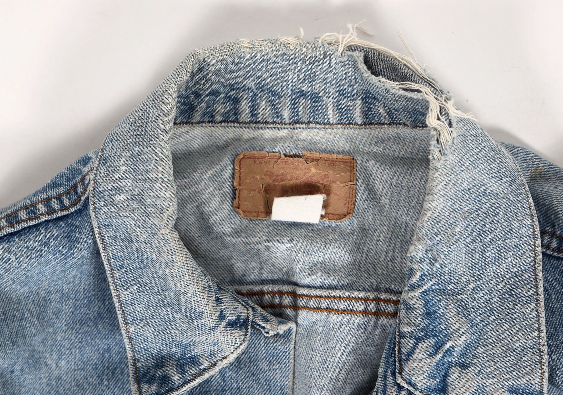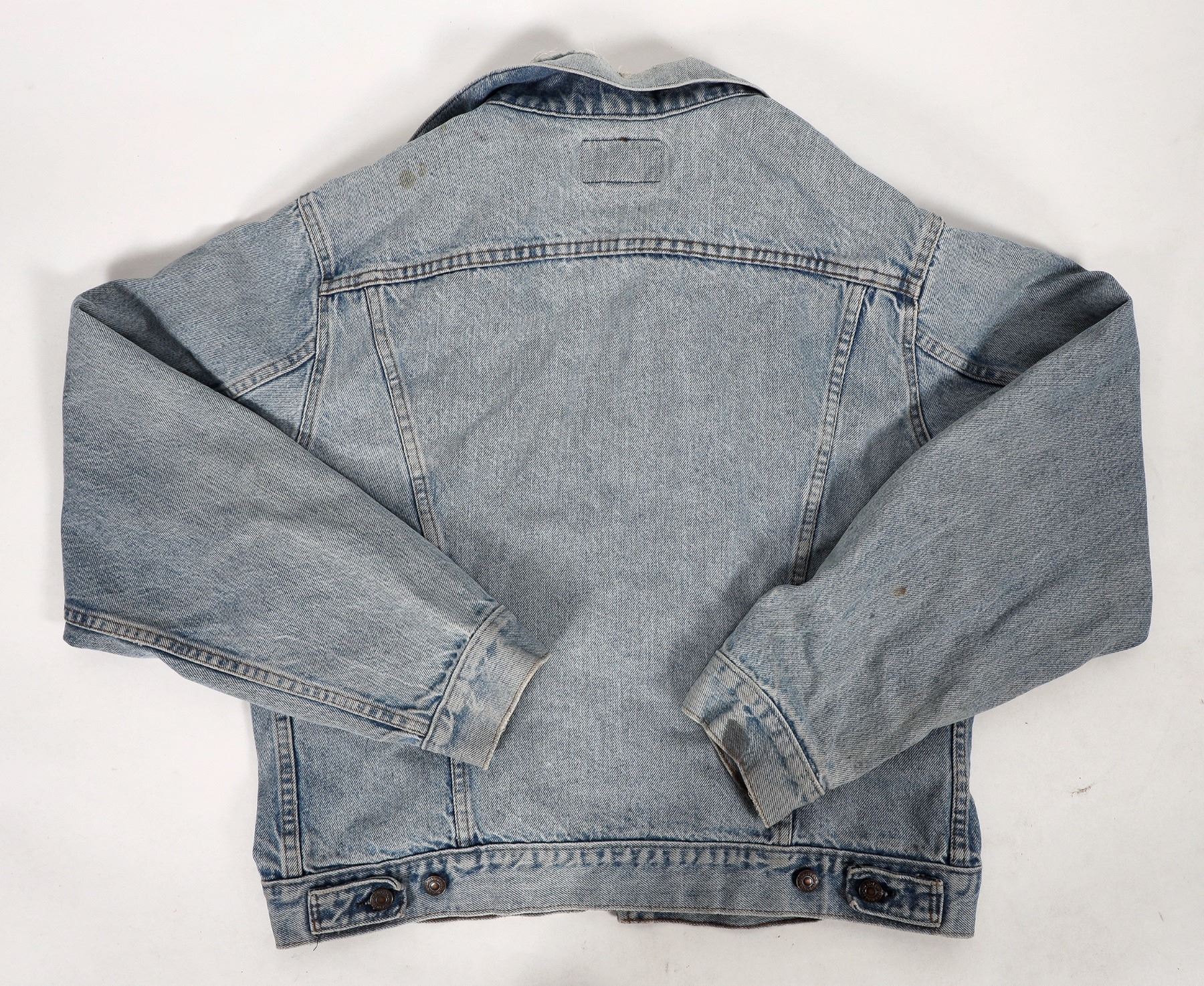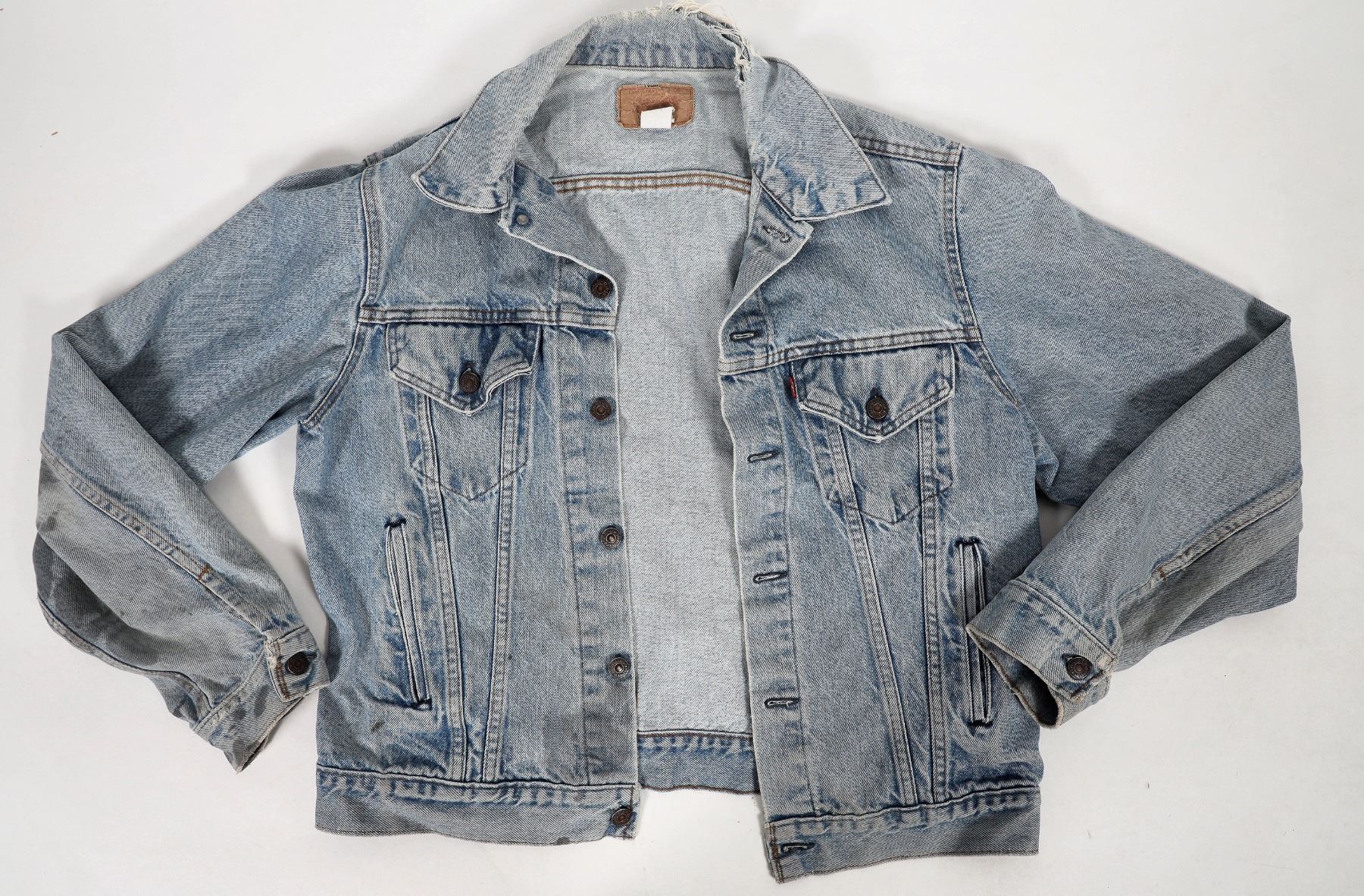 c. 1980's Levi's denim jacket. Size not visible, appears to be about medium. Some light stains, heavy collar wear etc. Please inspect.