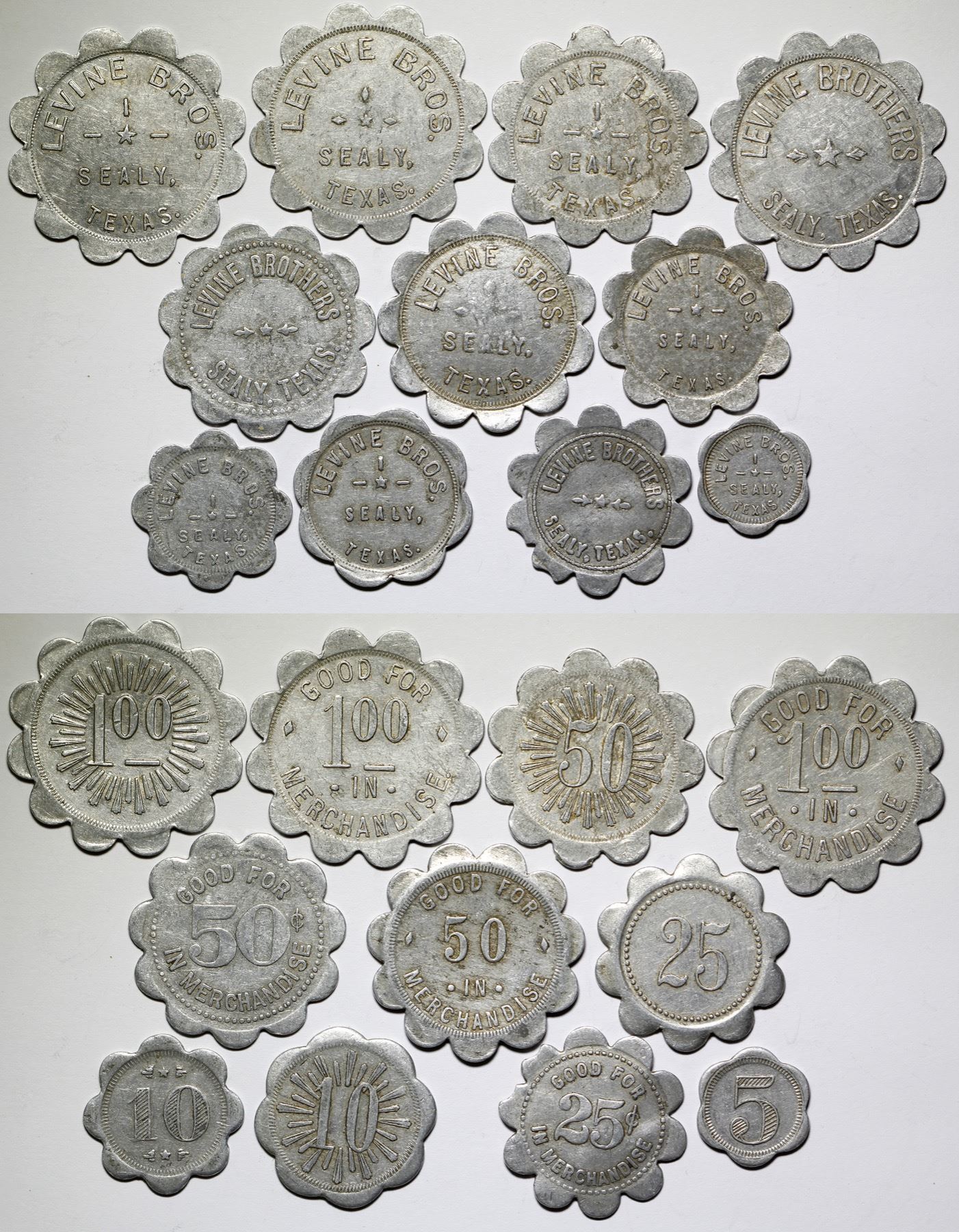 Eleven tokens. Full assortment of reverses, some duplicates State: Texas City: Sealy Date: HWAC# 85361