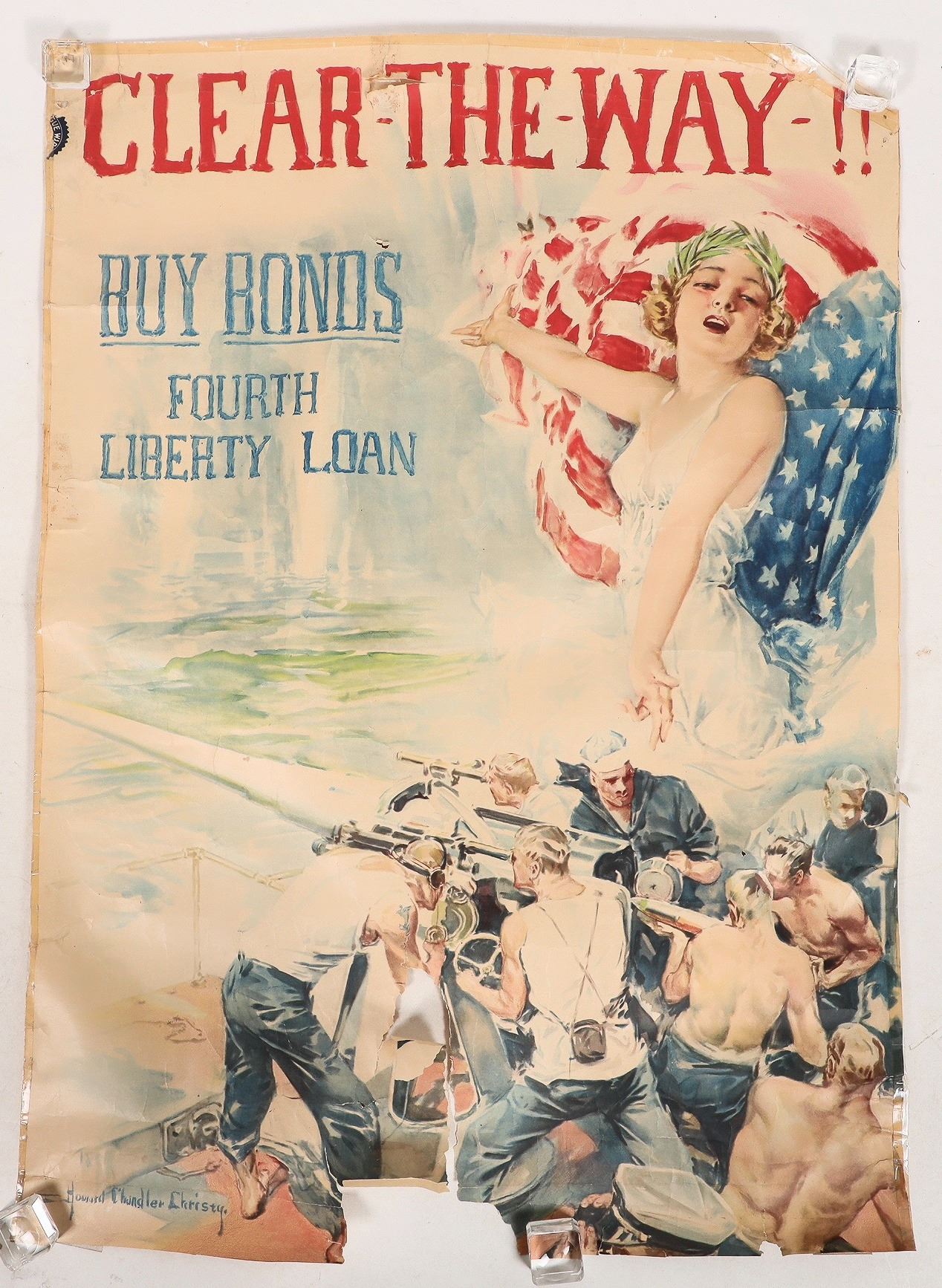 WW 2 Navy themed Liberty Bonds poster. Poor condition, sold as is.