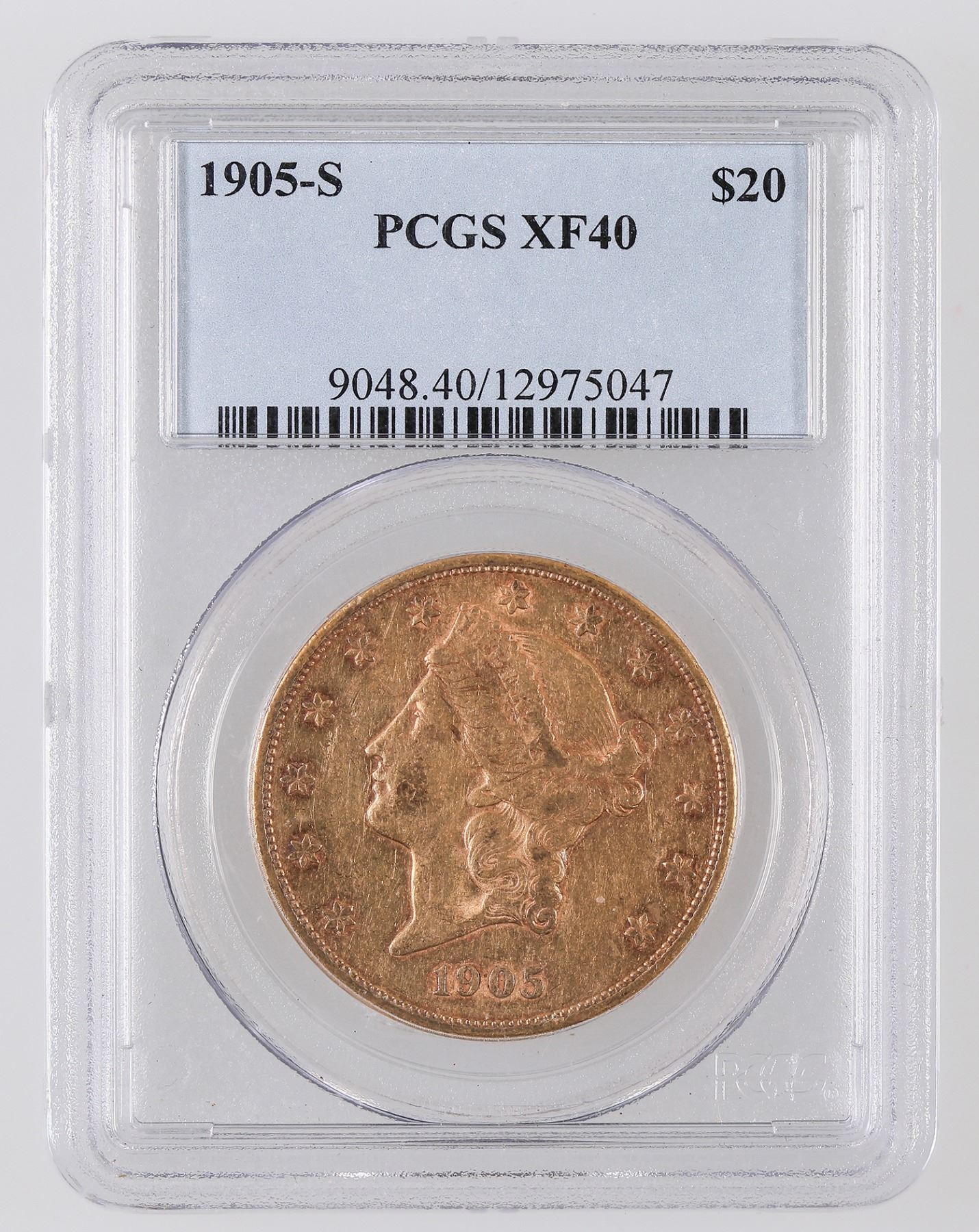 PCGS certified XF 40 1905-S Liberty Head $20 gold piece. Mintage: 1,813,000. [ 20