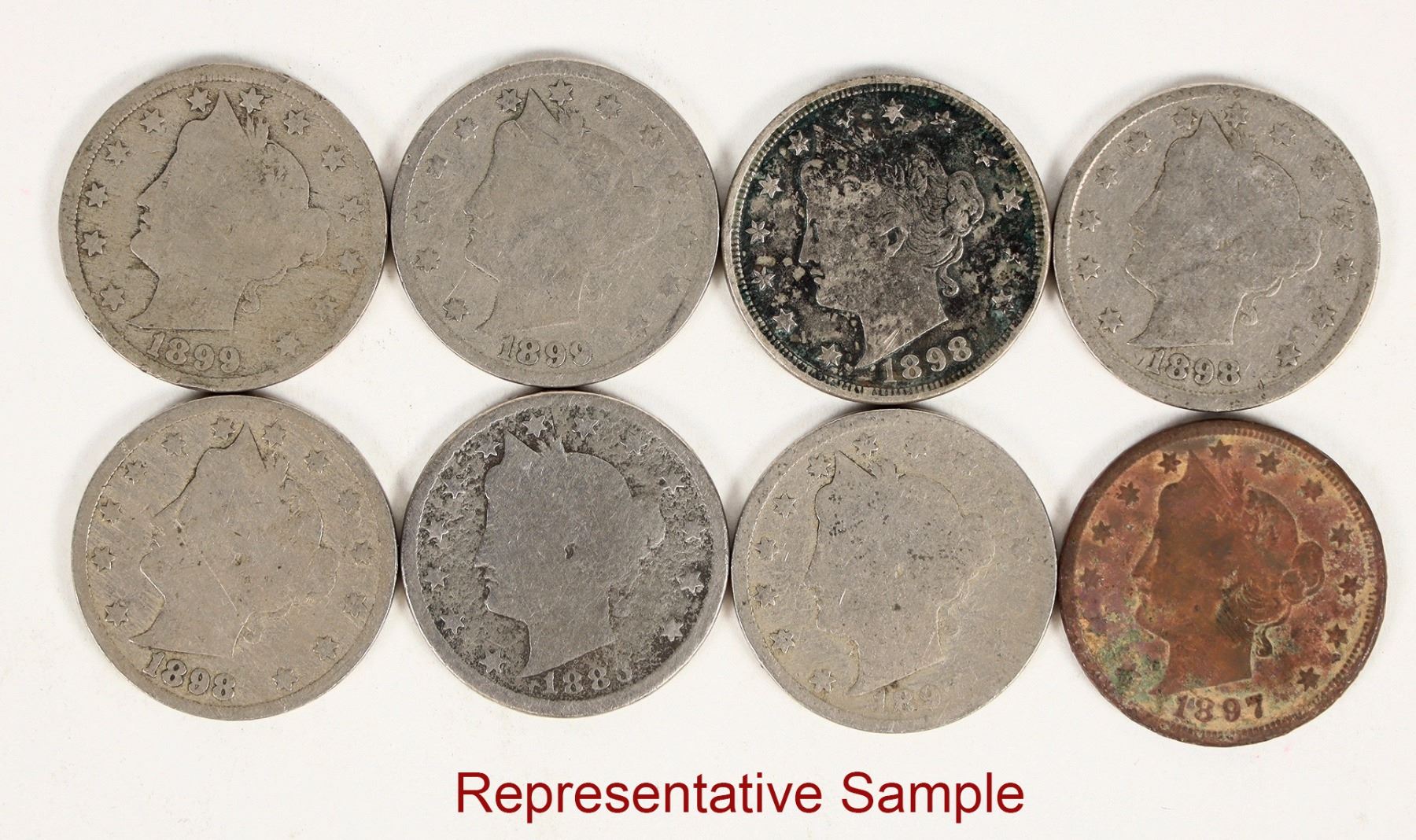 Thirty five Liberty head nickels dated 1883-1899. AG-VG condition.
