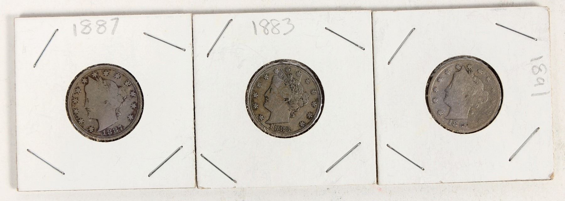 Sixty five Liberty "V" nickels. Fourteen from the 1800s; 51 from the 1900s. AG-F condition.
