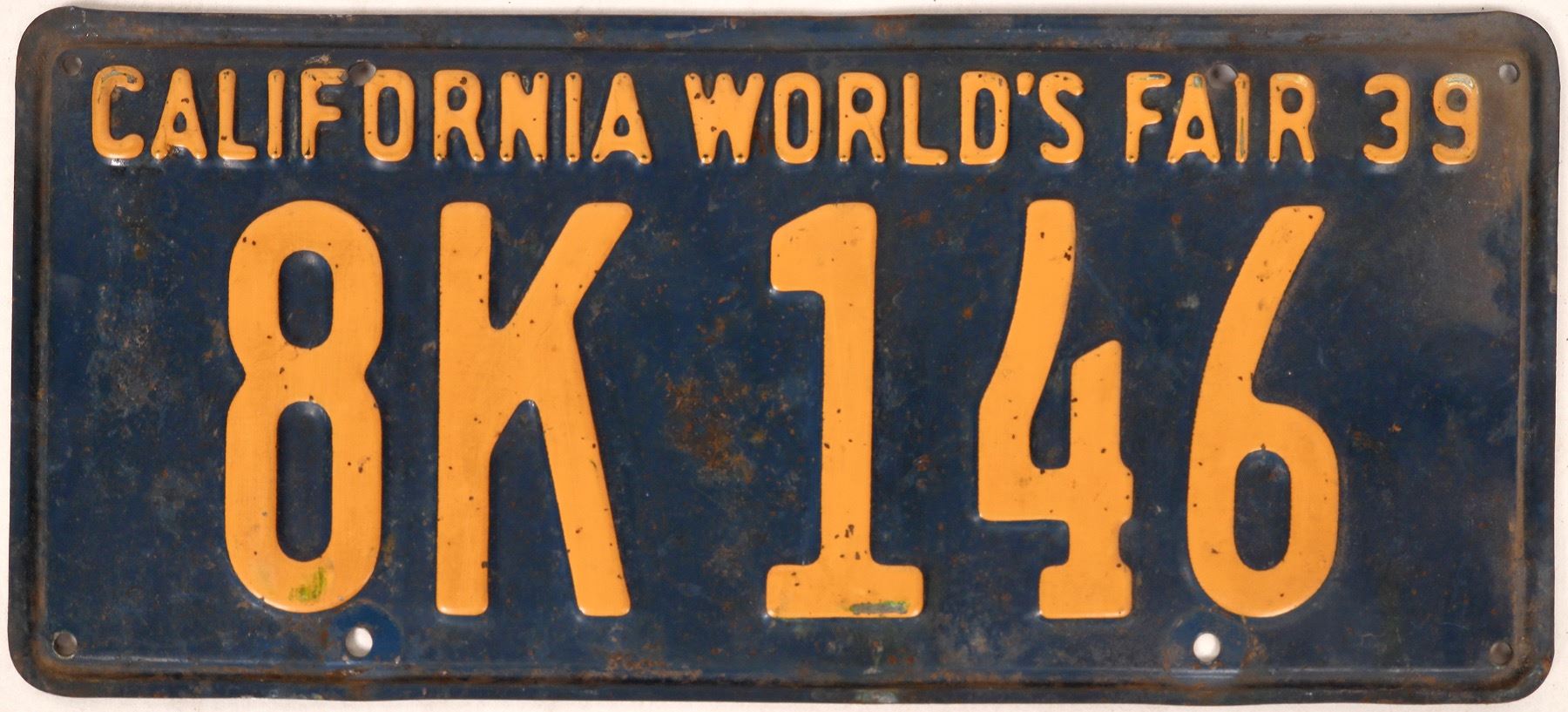 Large 1939 California World's Fair license plate. 6x14". Light rust. California 1939