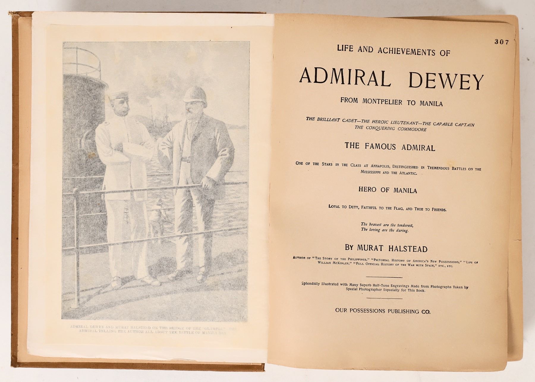 The Life & Adventures of Admiral Dewey-1899, by Murat Hallstead. Boards are separating for spine, but book is readable. Please see photos for more detail. 1899